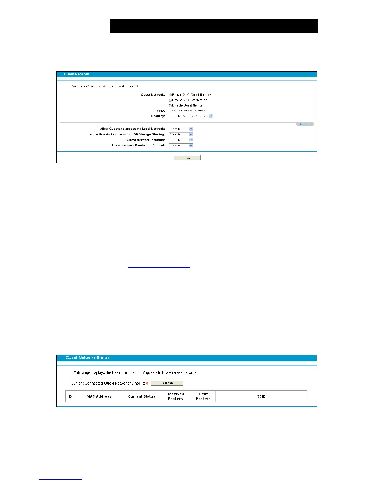 Choose menu “Guest Network”“Guest Network Status”, you can see the MAC Address,