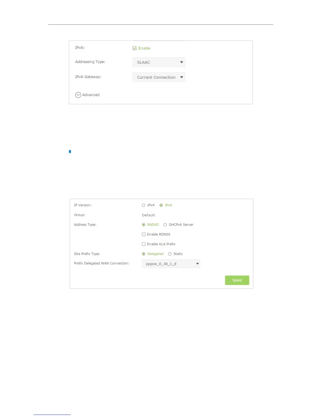 Note: If your ISP has provided the IPv6 address, click Advanced to reveal more settings. Check to use