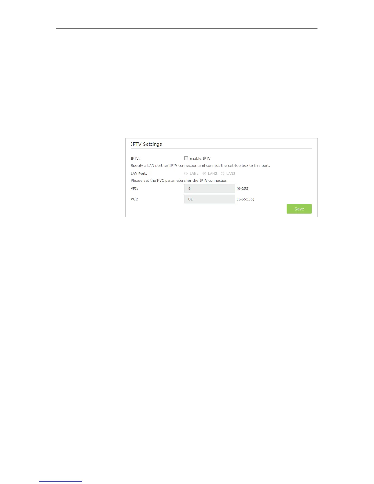 5. Fill in PVC parameters (VPI and VCI). These parameters are