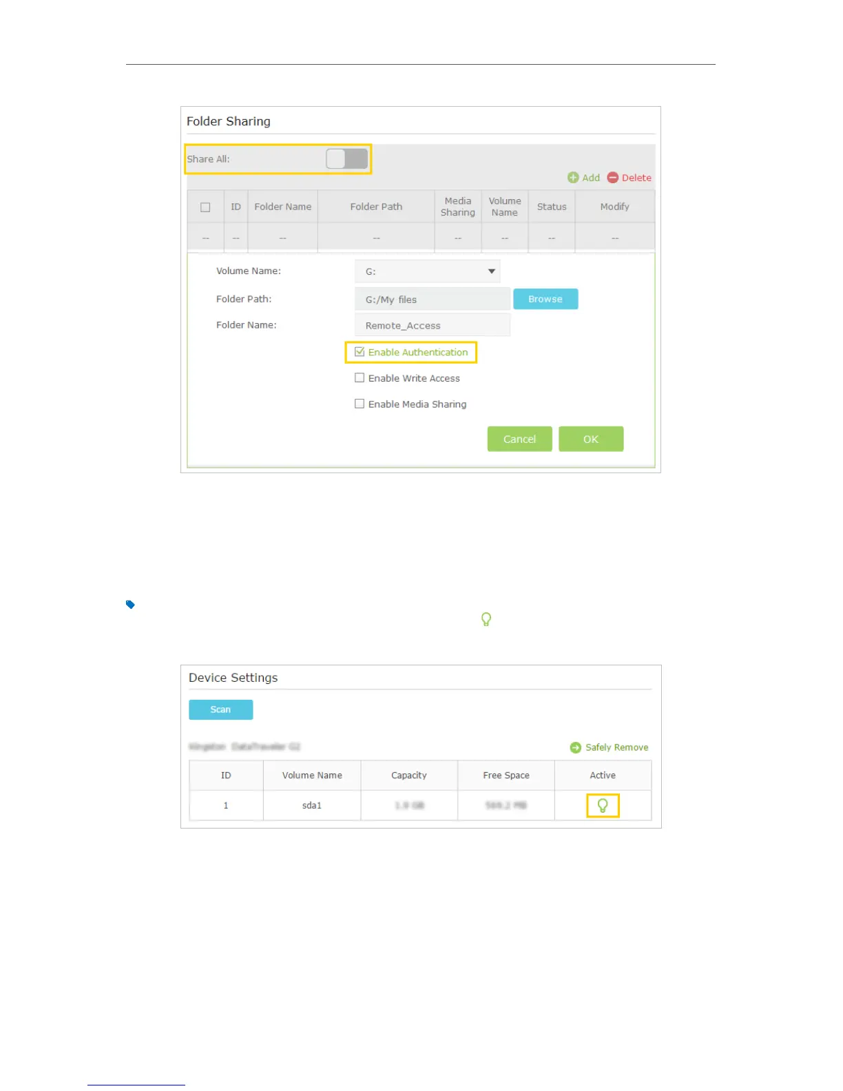 4. Tick Enable Authentication. If you allow network clients to modify this folder, tick