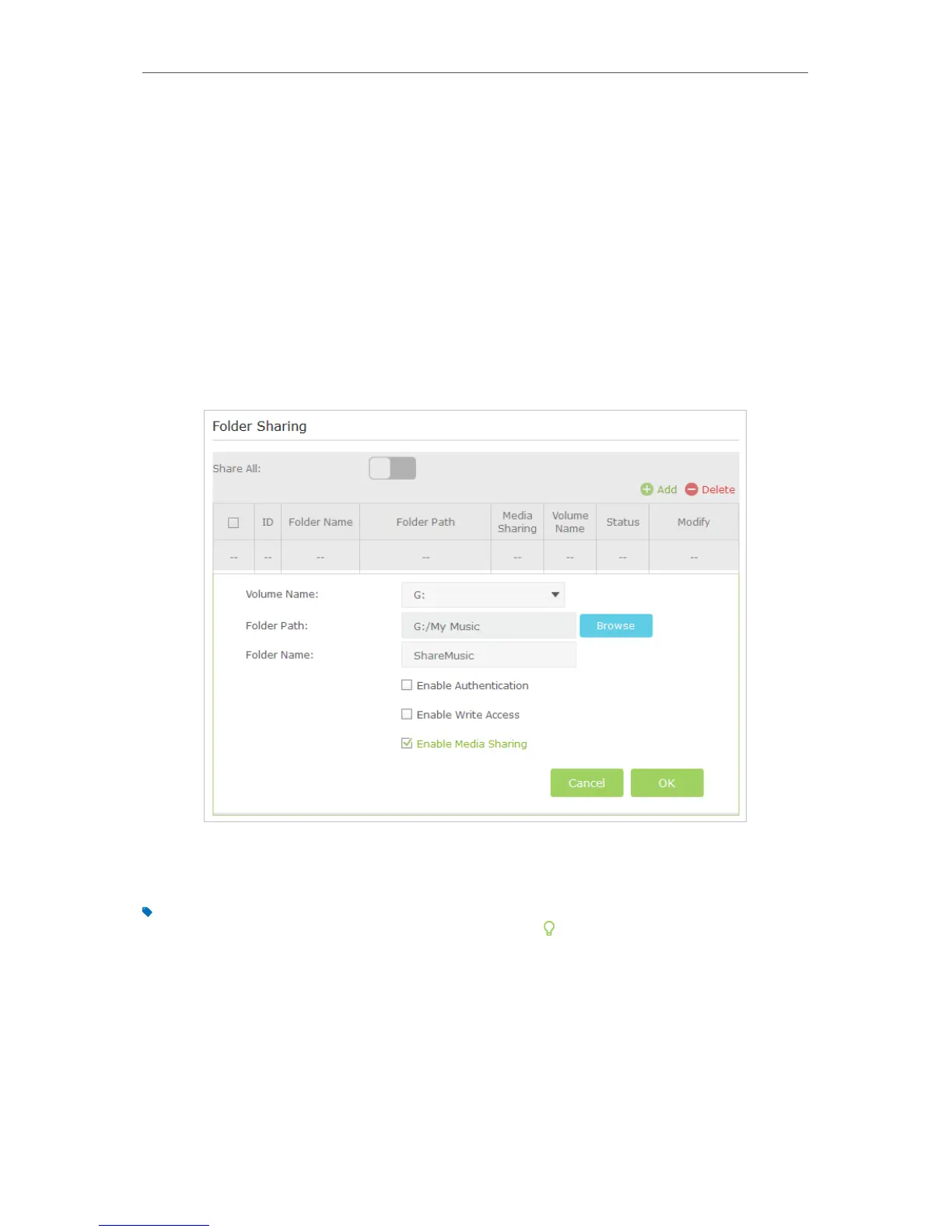 click Add to add a new sharing folder.