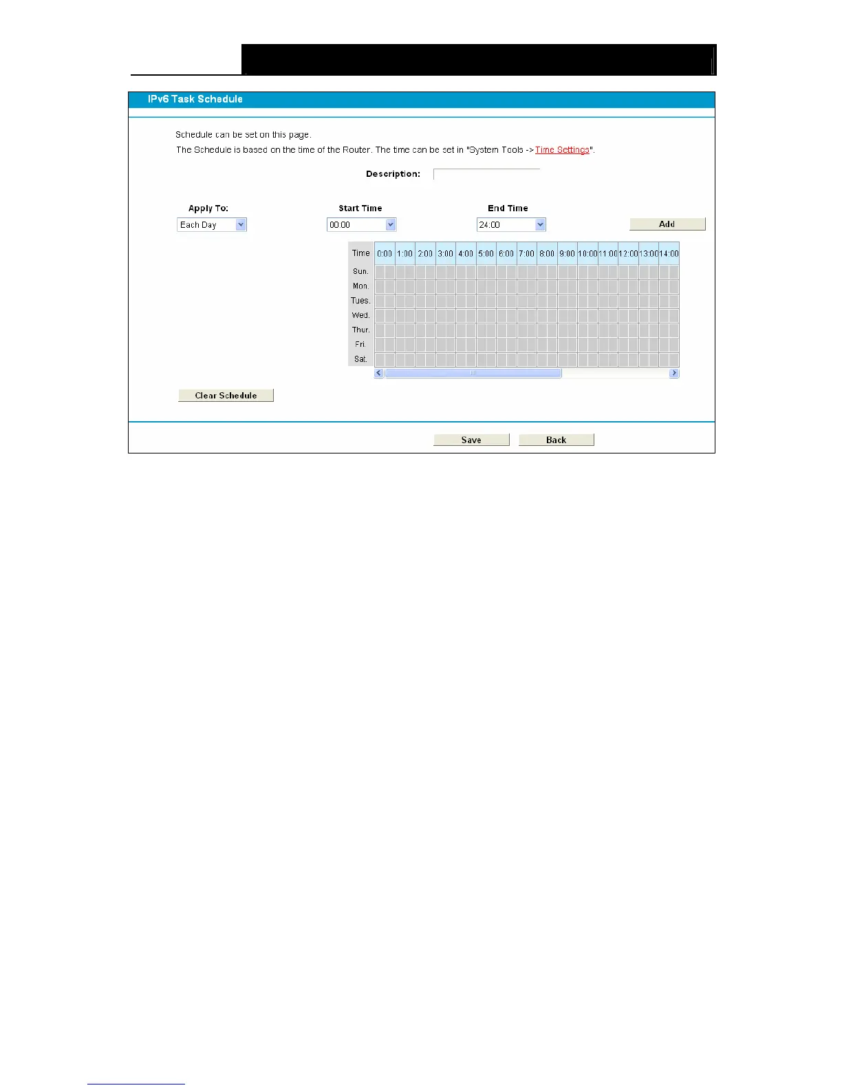 Click the Clear Schedule button to clear your settings in the table.