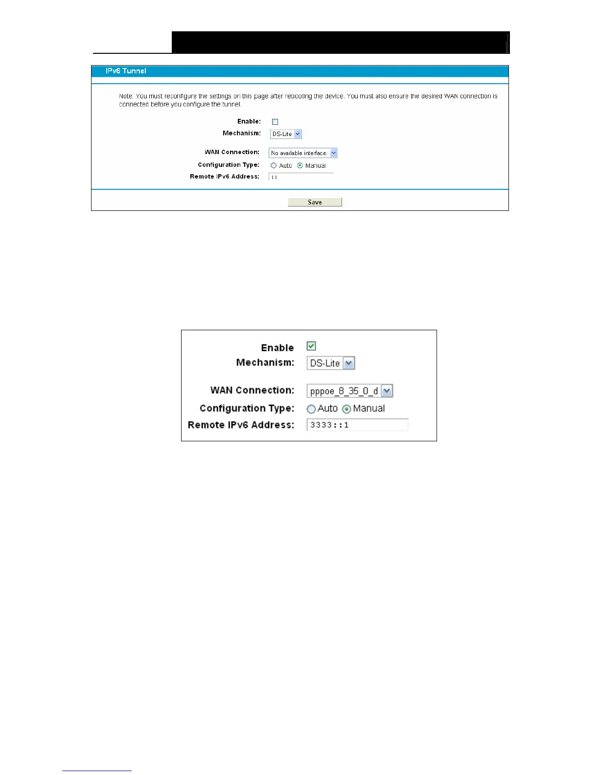 Enable: Check the box to enable IPv6 Tunnel function. It is disabled by default.