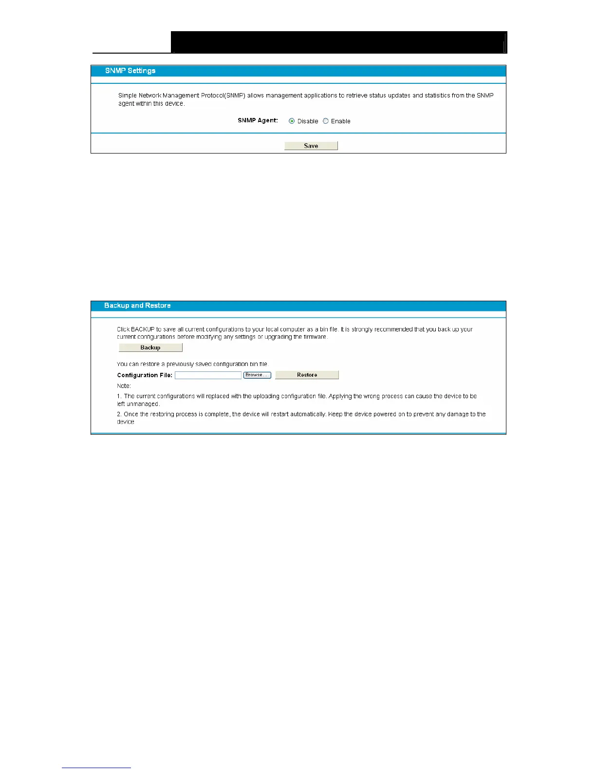 Click the Backup button to save all configuration settings as a backup file in your local computer.
