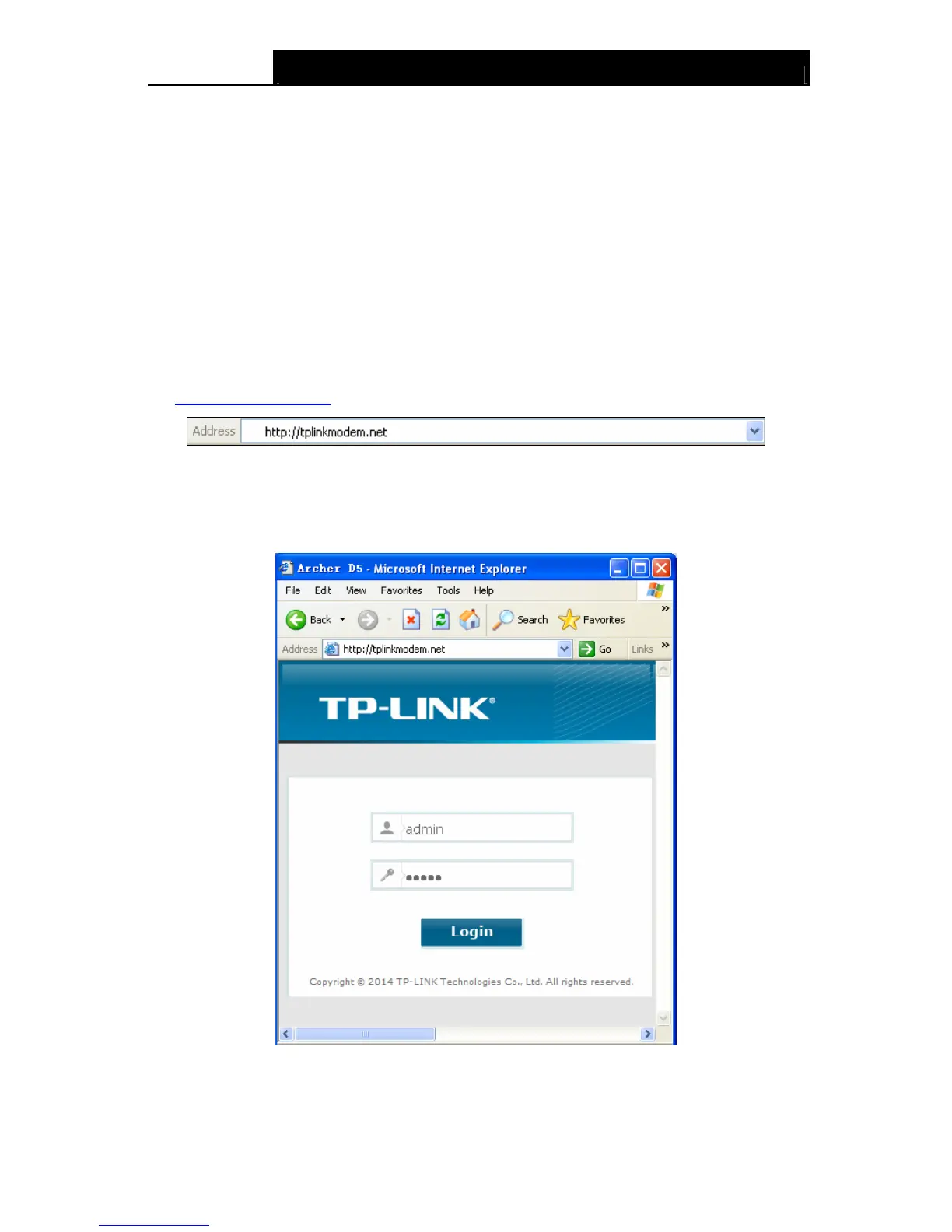 After a moment, a login window will appear, similar to the Figure 3-2. Enter admin for the