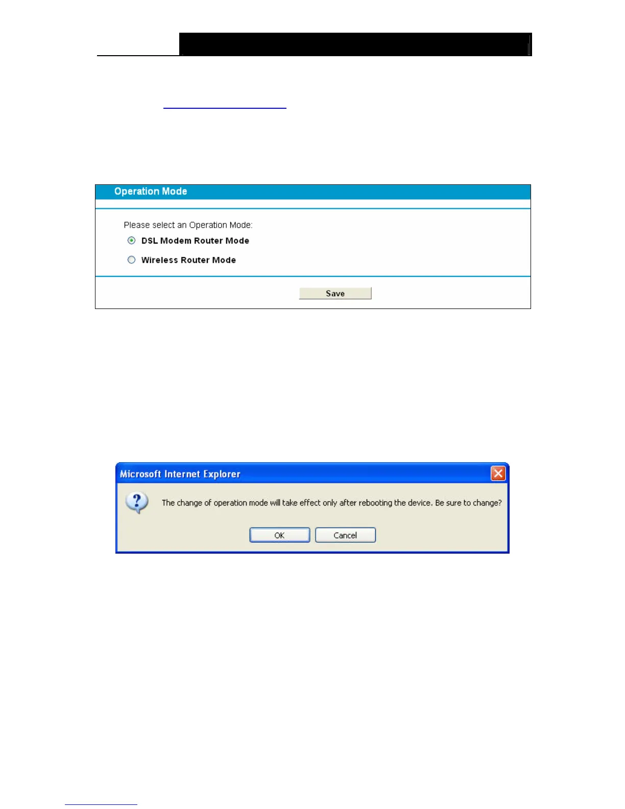 After you click the Save button, the Note Dialog will appear. Click OK and then the modem router