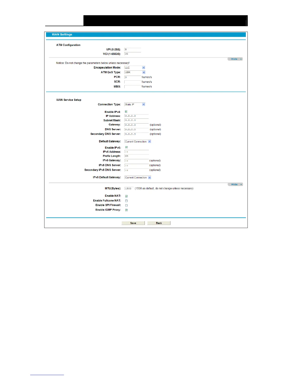 ATM Qos Type: Select ATM Qos Type provided by your ISP. The default type is UBR.