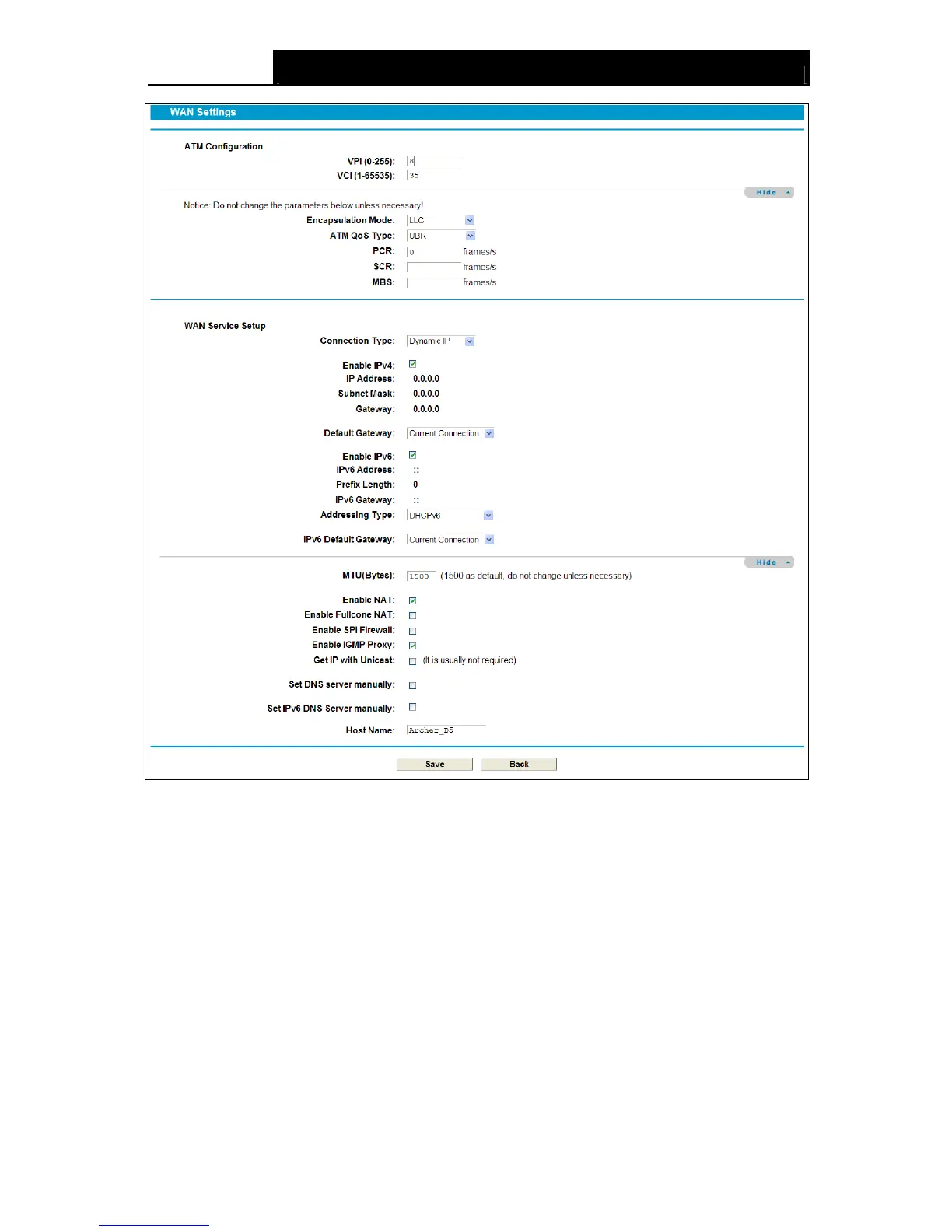 Click Advance, advanced selections for WAN Service Setup can be shown.