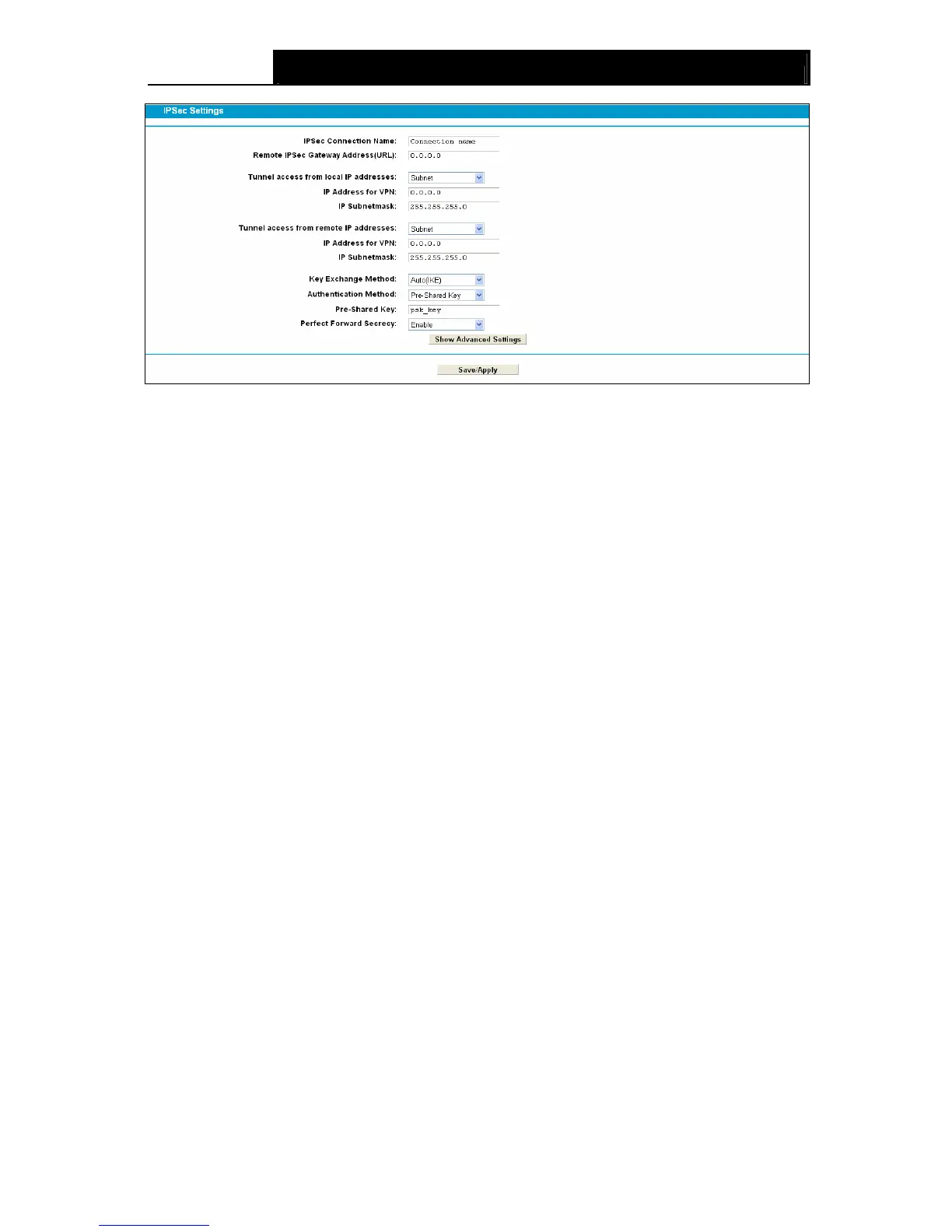 IP Address for VPN: Enter the IP address of the Remote LAN. ( For example: Input