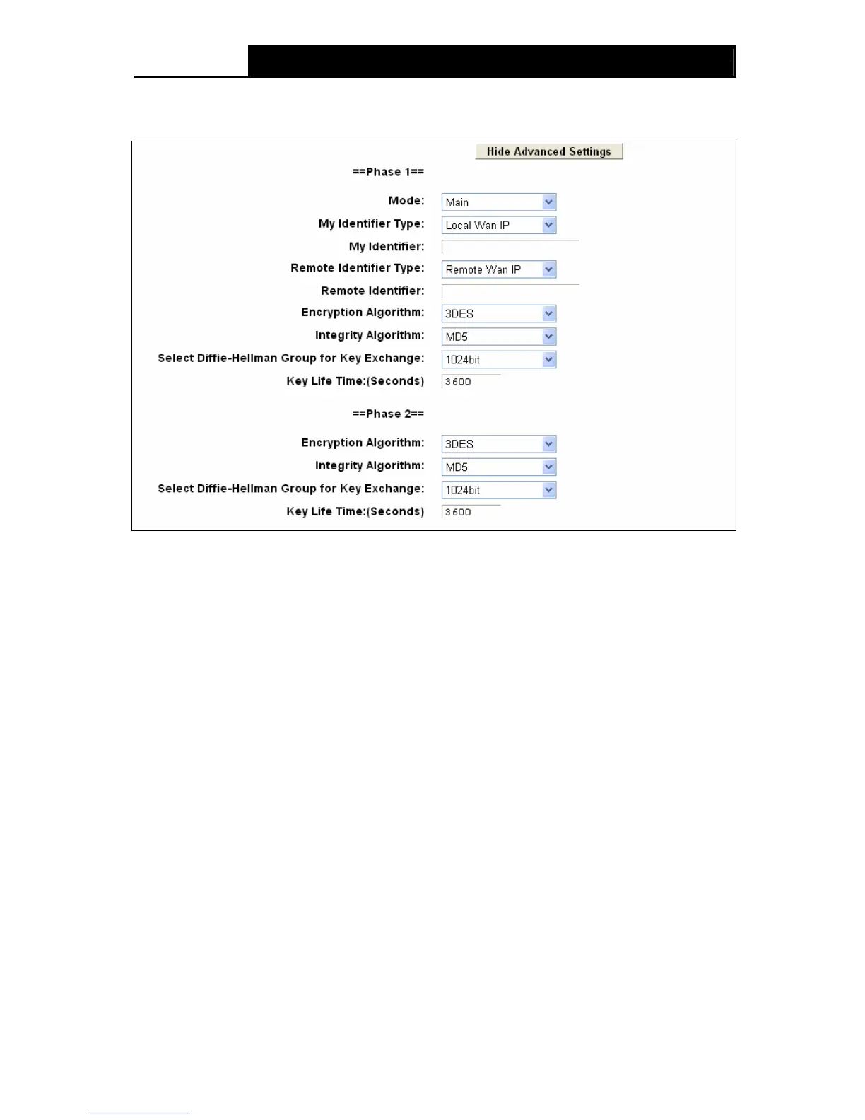 Key Life Time: Enter the number of seconds for the IPSec lifetime. It is the period of time to