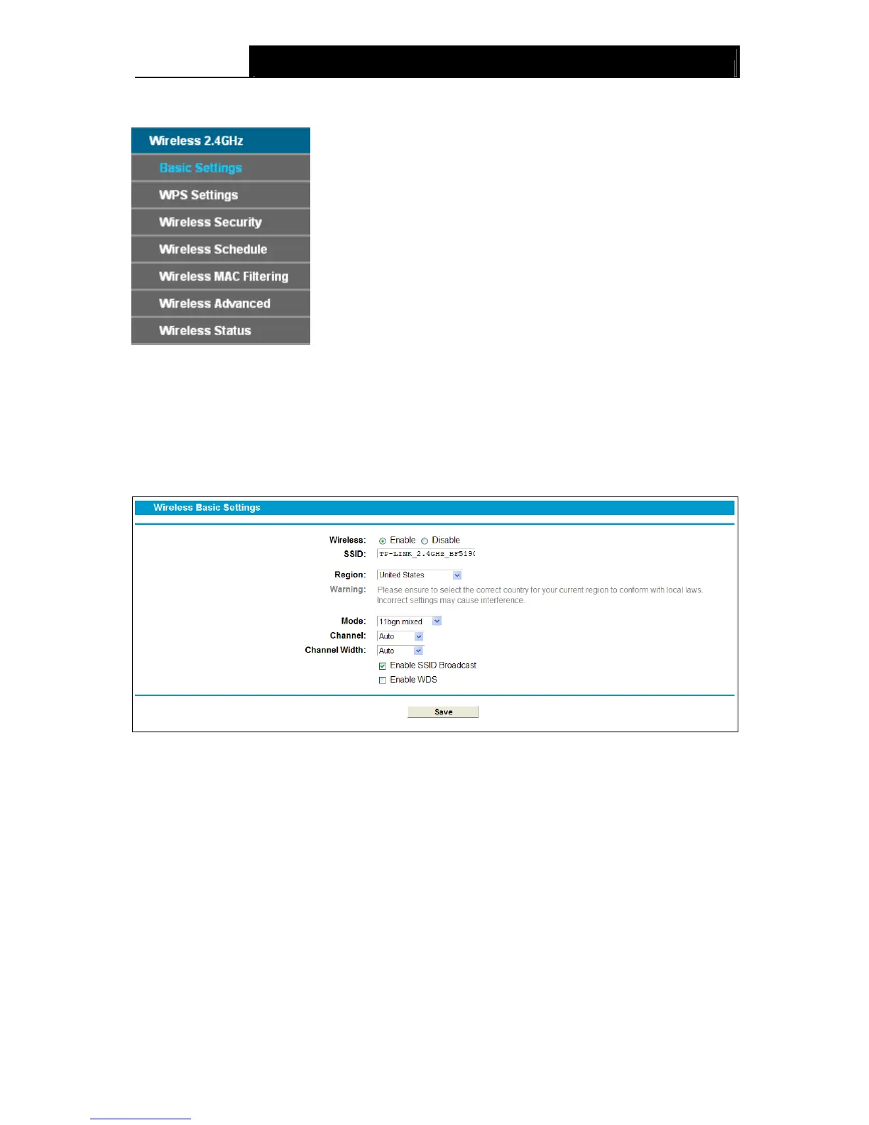 Choose menu “Wireless 2.4GHz” → “Basic Settings”, you can configure the basic settings for