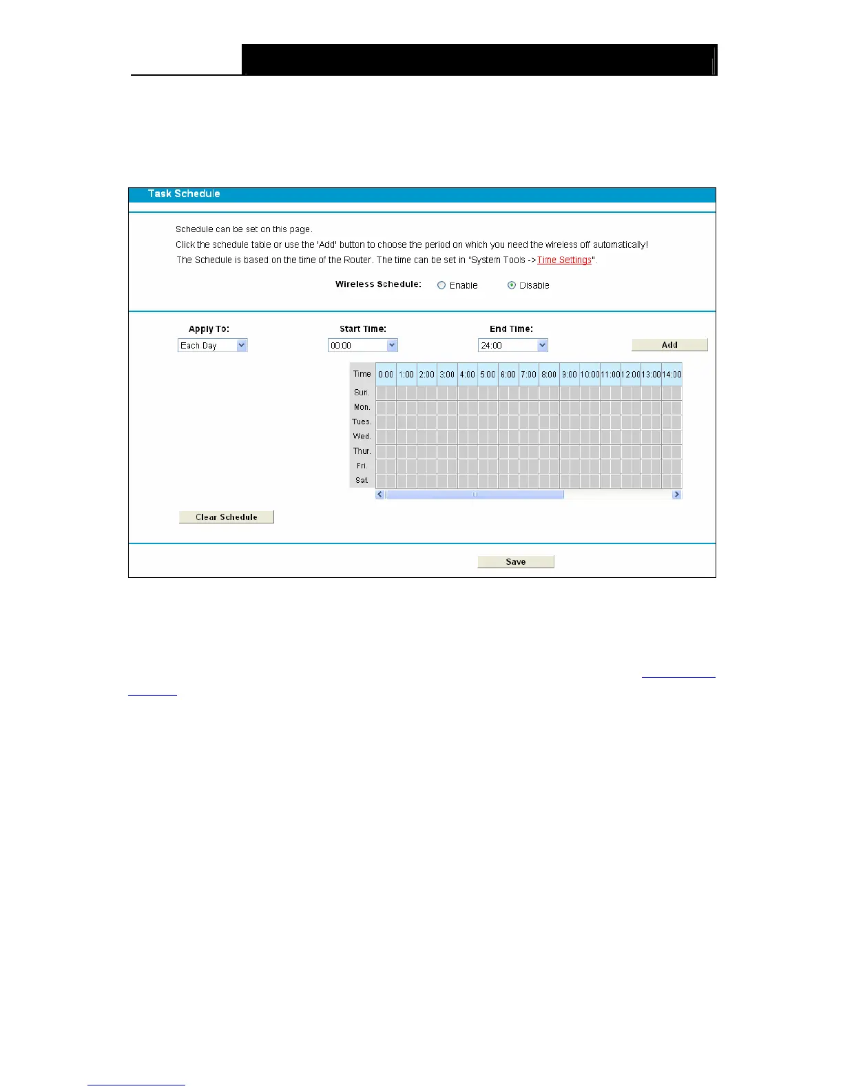 Settings, then you can enable or disable Wireless Schedule.