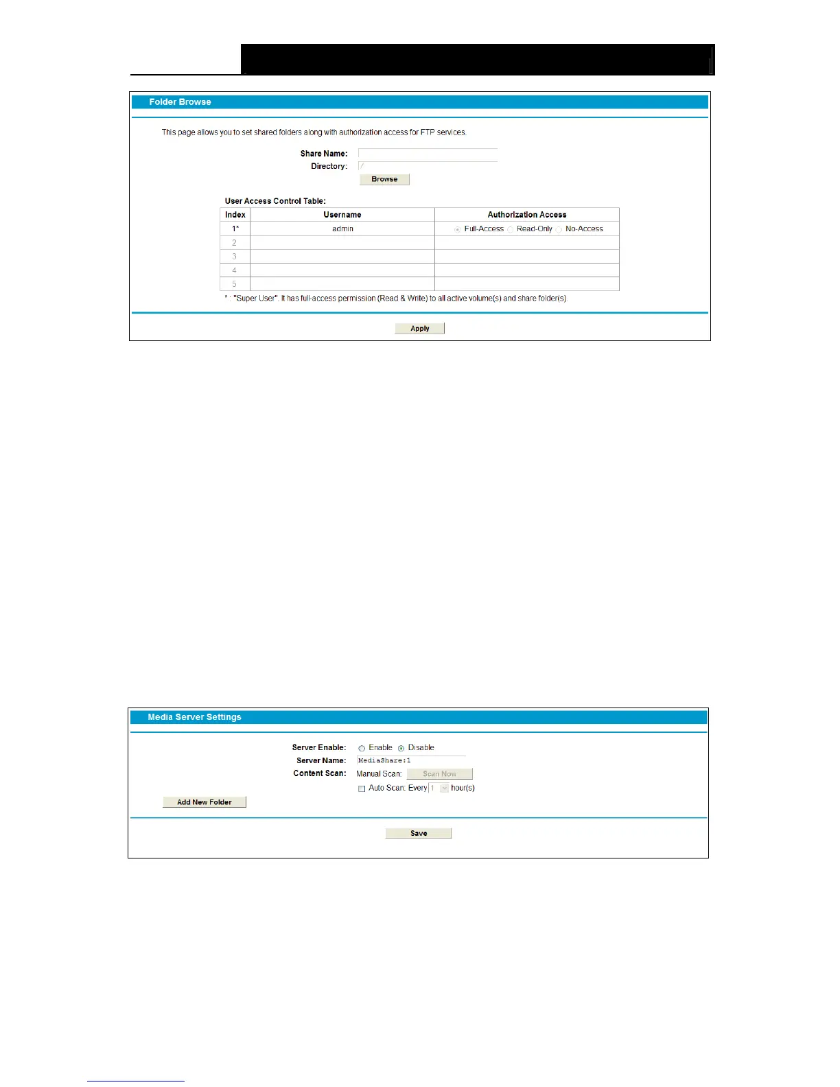 Choose menu “USB Settings”→”Media Server”, you can create media server that allows you to