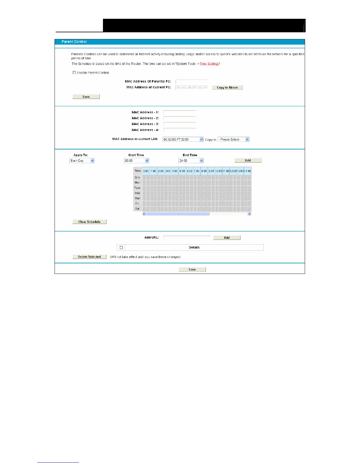 MAC Address of Parental PC: In this field, enter the MAC address of the controlling PC, or