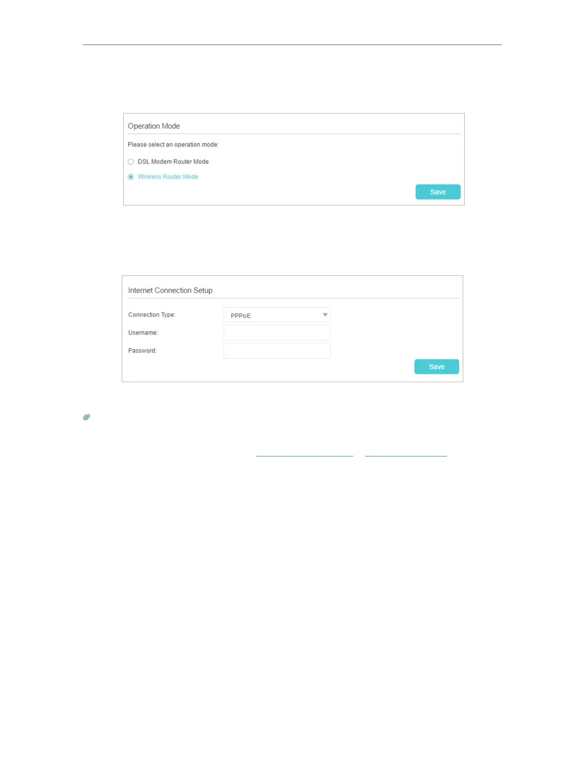 5. Go to Basic > Internet, select the Connection Type, and enter the information