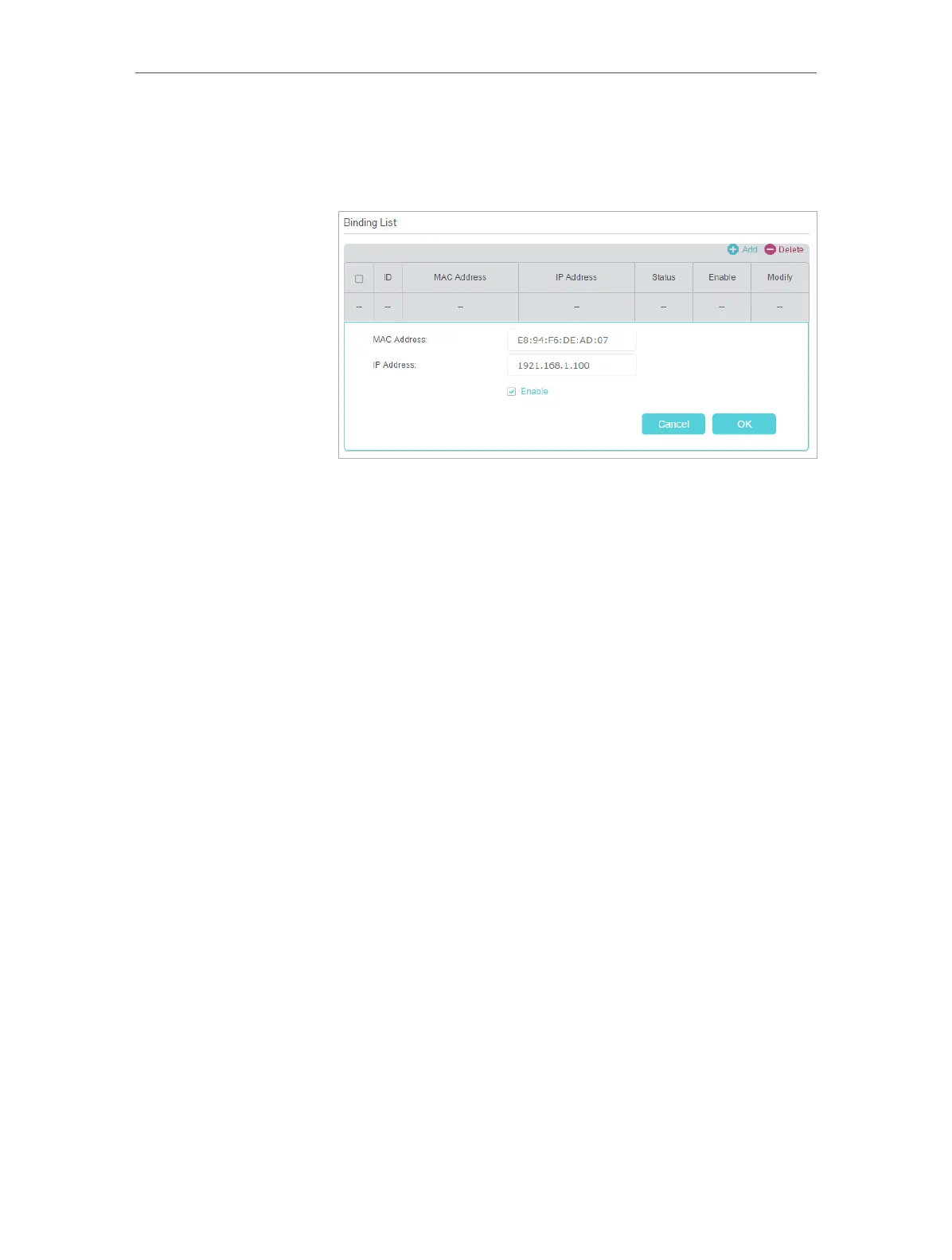2 ) Enter the MAC address and IP address that you want to
