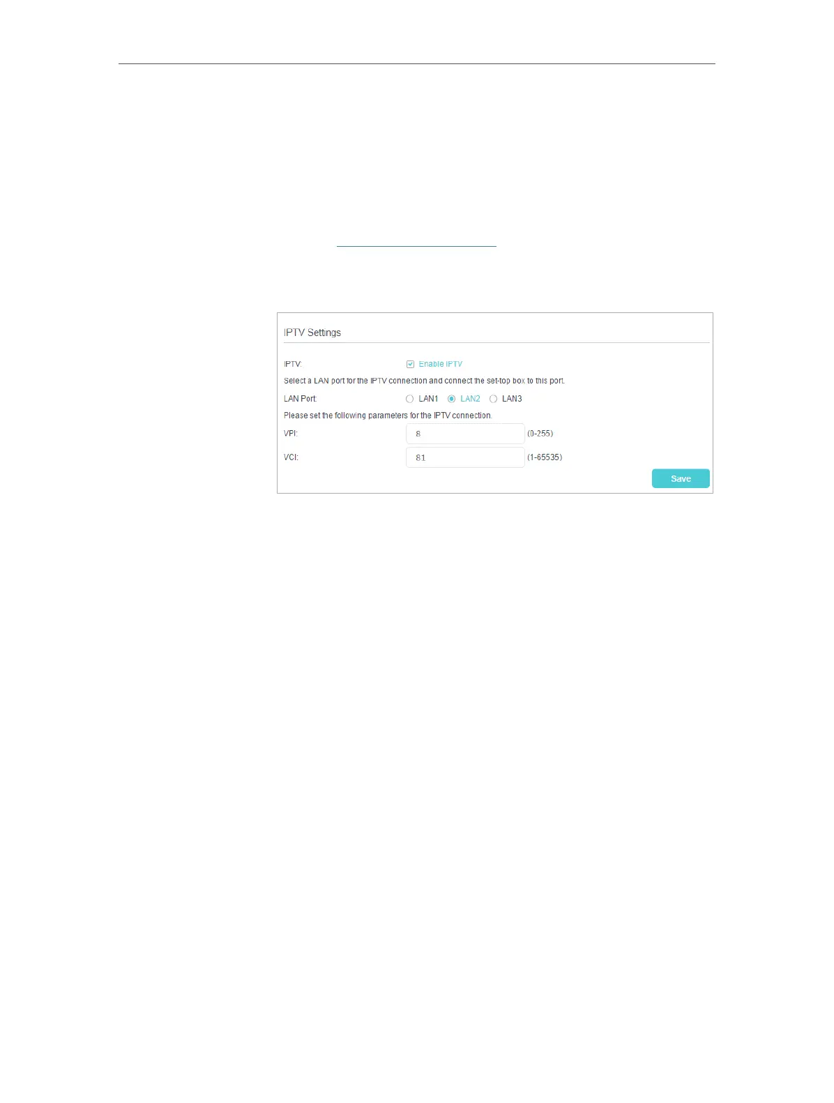5. Fill in PVC parameters (VPI and VCI). These parameters are