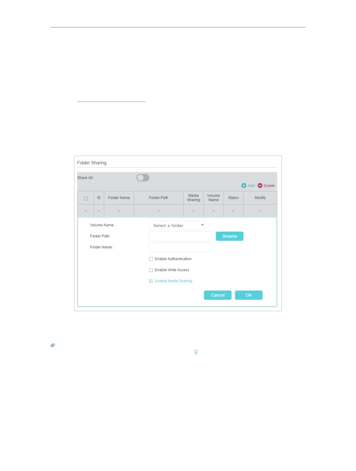 click Add to add a new sharing folder.