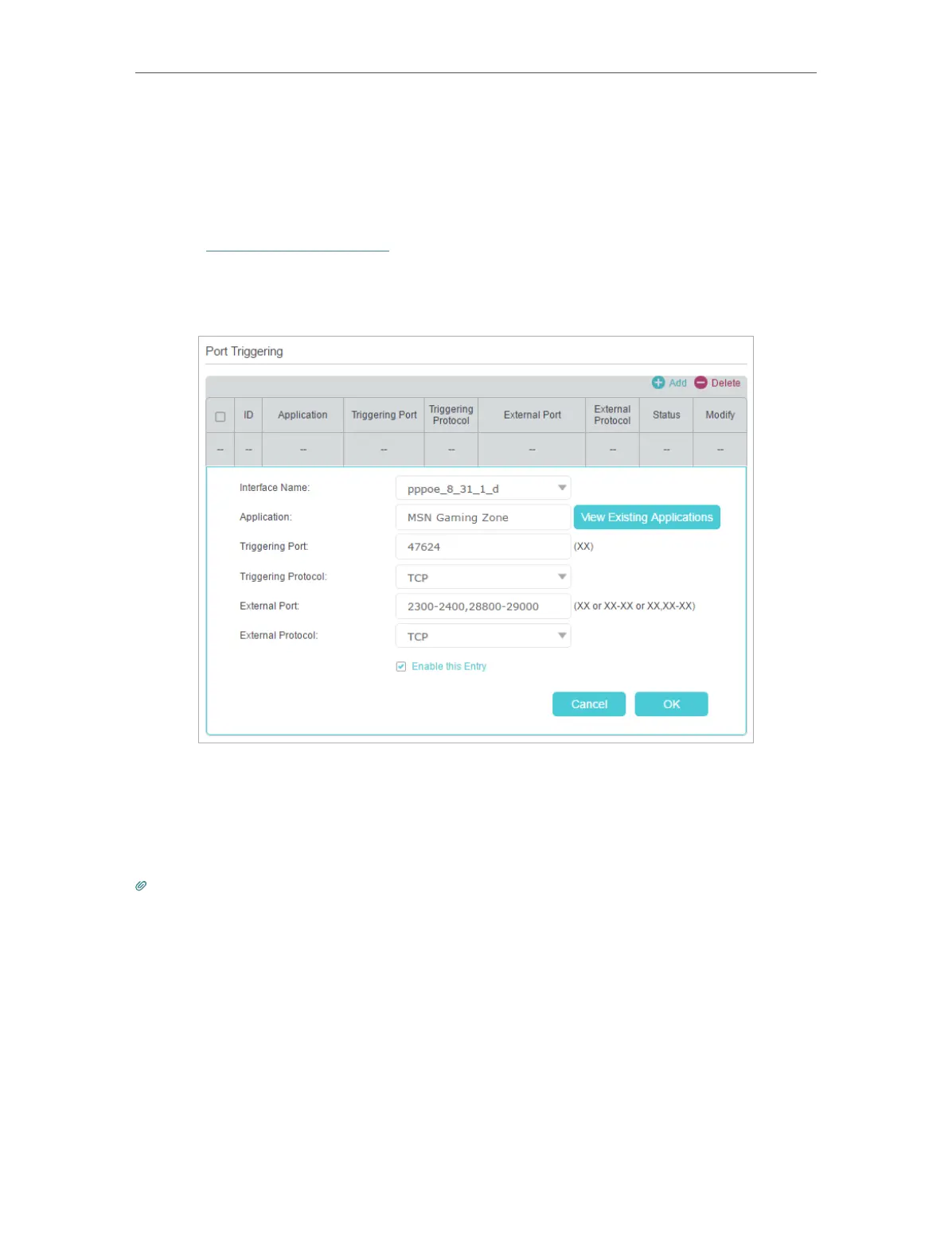 modem router can forward them to the corresponding host. Port triggering is mainly