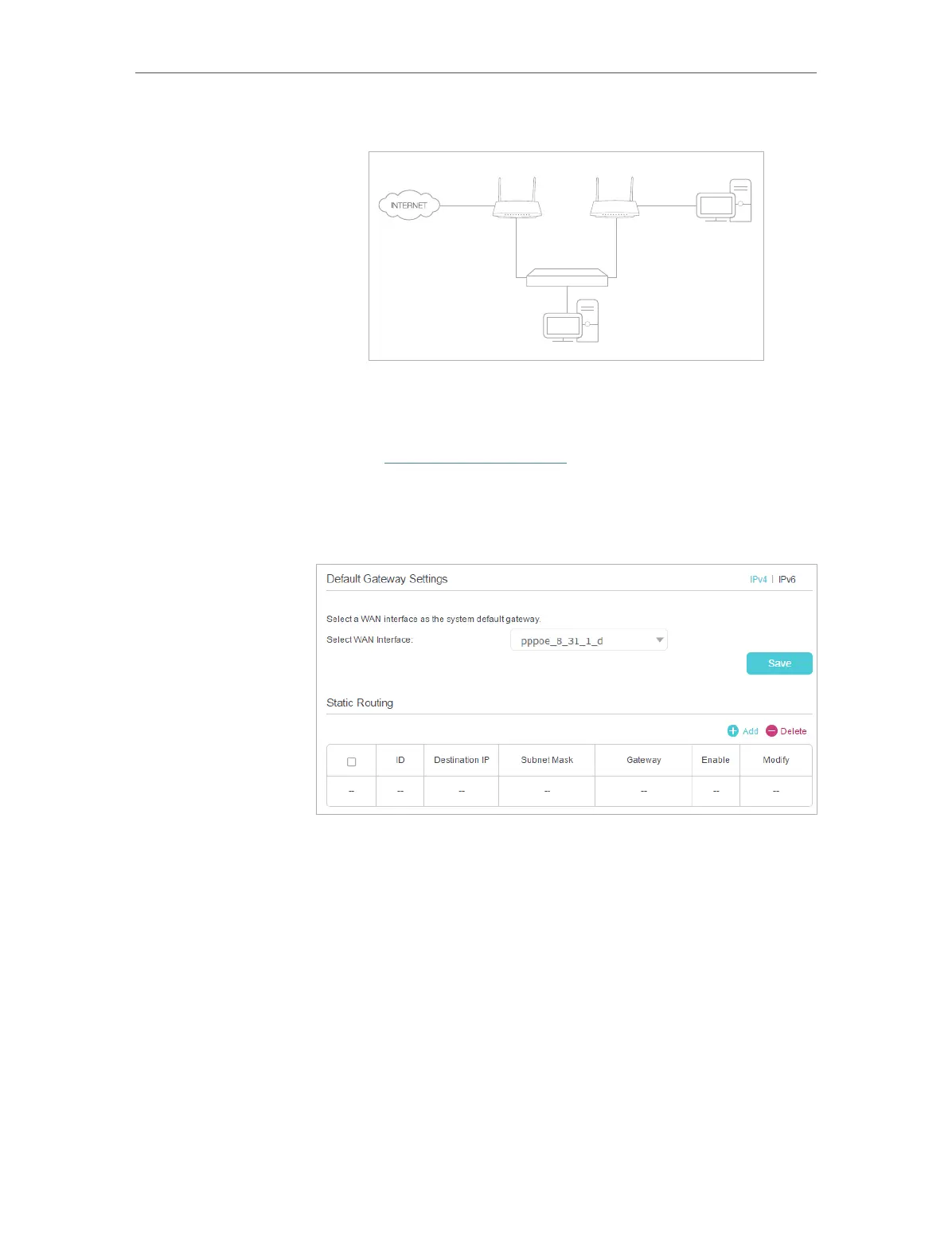 4. Click Add to add a new static routing entry. Finish the settings
