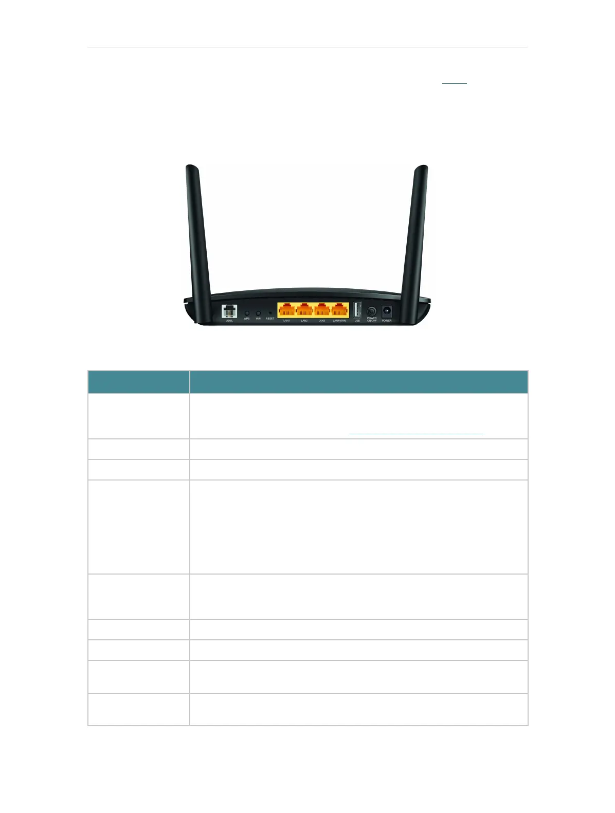 POWER ON/OFF The switch for the power. Press it to power on or off the modem router.