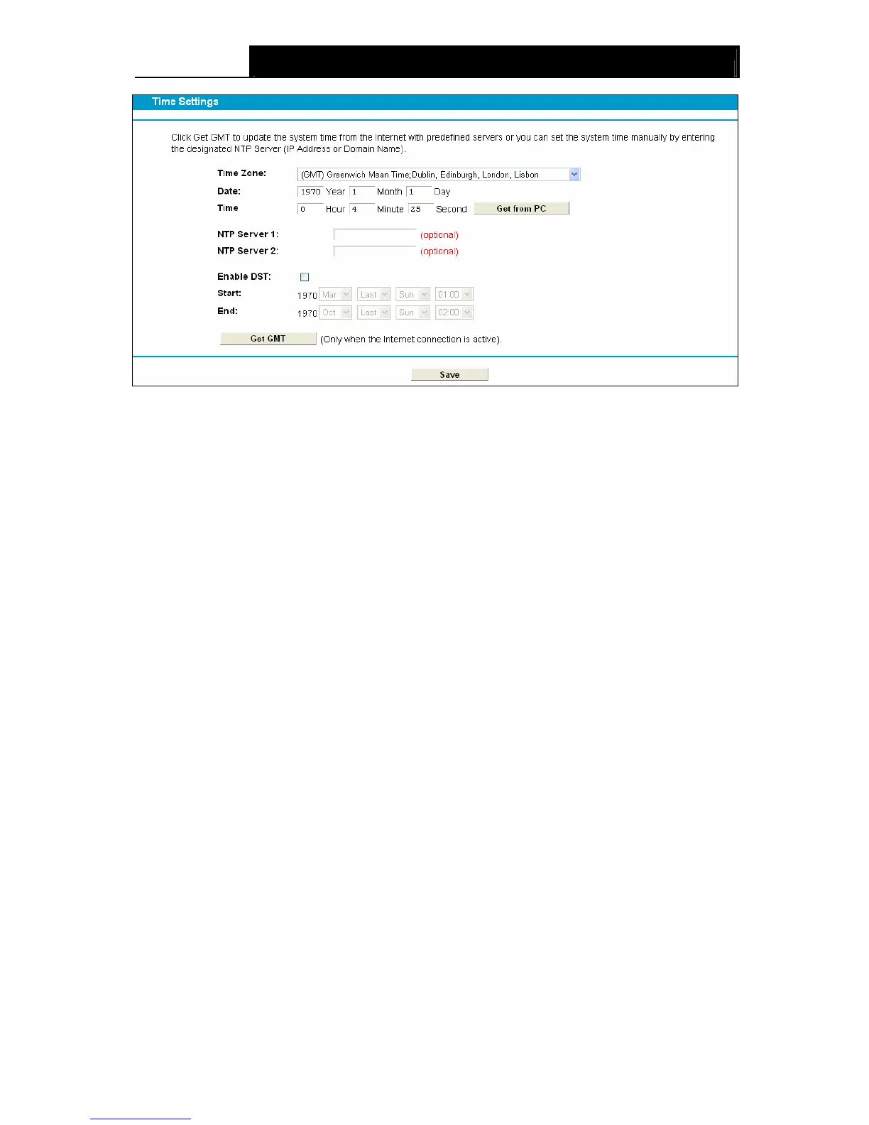 3. Click the Get GMT button to get system time from Internet if you have connected to the