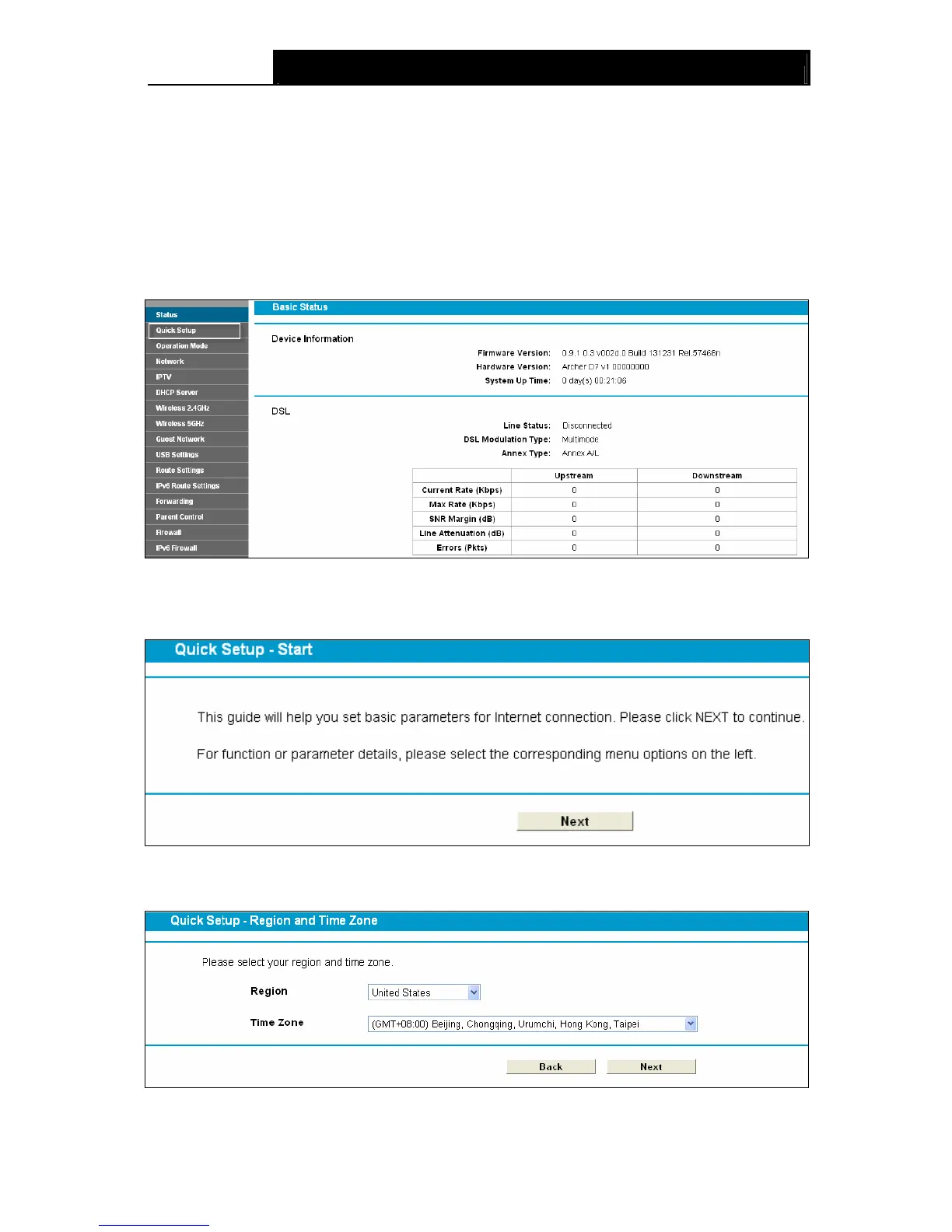 3. The Quick Setup page will appear for you to quickly configure your modem router, Click Next