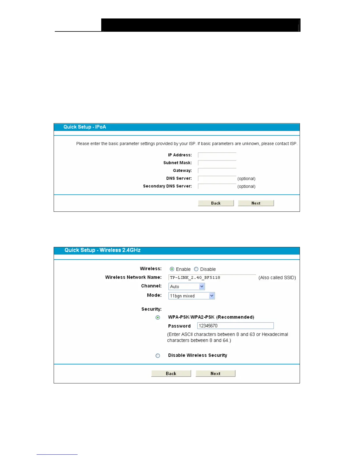 Enter the Static IP or IPoA information provided by your ISP, and then click Next.