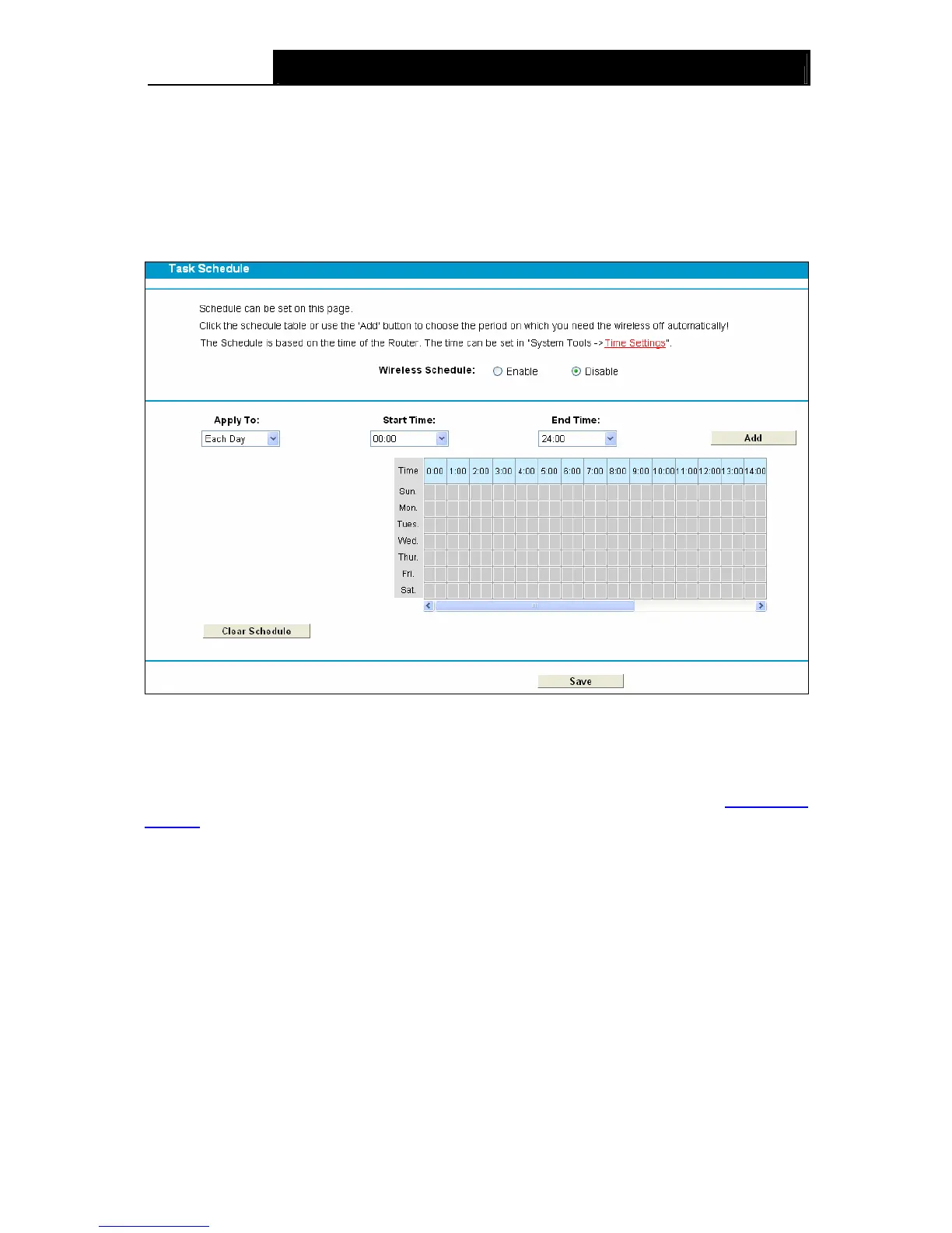 Choose menu “Wireless 2.4GHz”“Wireless Schedule”, you can