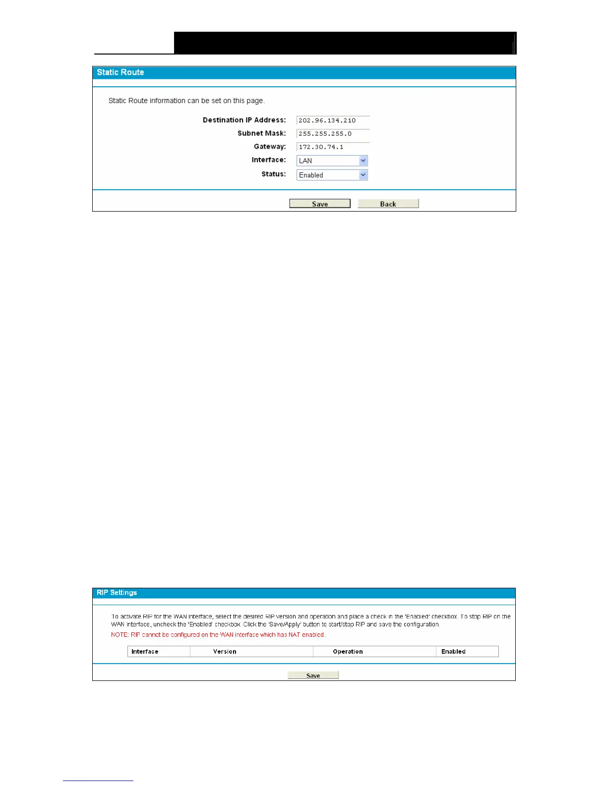 Choose “Route Settings”“RIP Settings”, you can see the RIP (Routing Information Protocol)