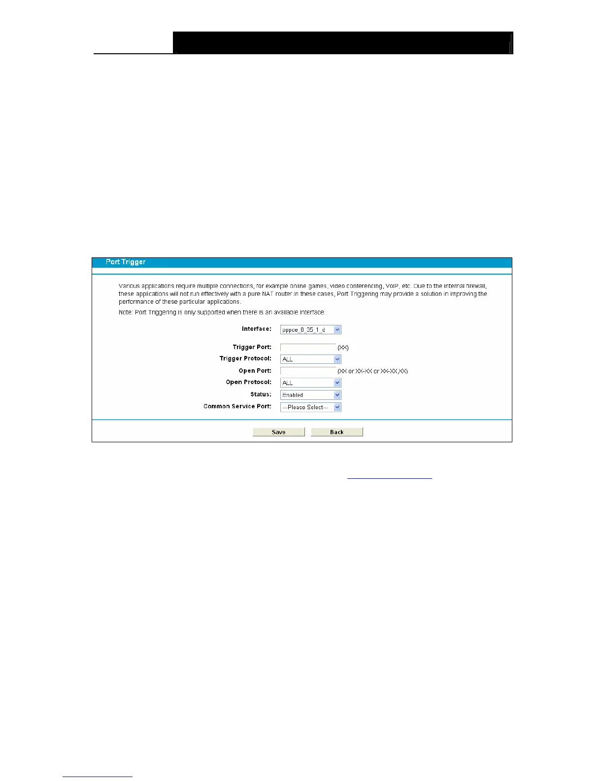 Status: The status of this entry, Enabled means the Port Triggering entry is enabled.