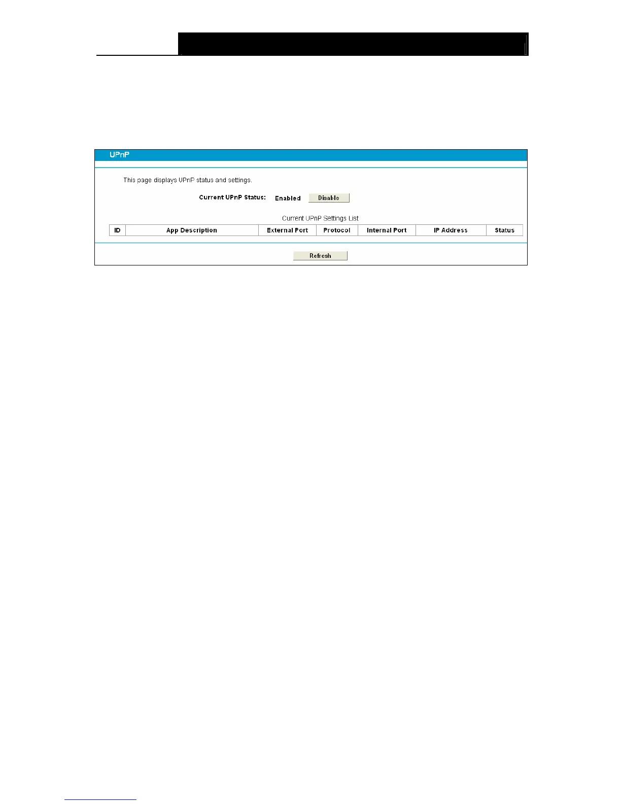 Choose menu “Forwarding→UPnP”, and then you can view the information about UPnP in the