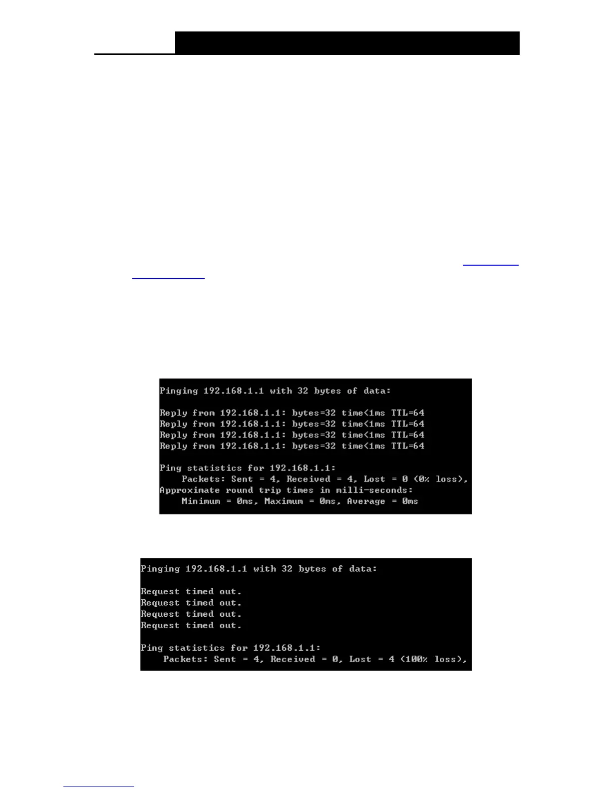 and press Enter. Type ping 192.168.1.1 on the next screen, and then press Ente r.
