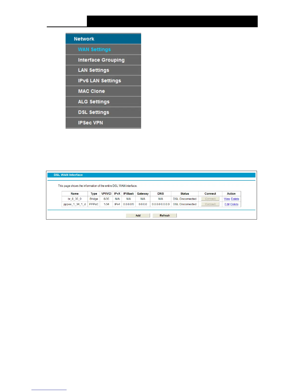 Choose “Networ k”“WAN Settings”, and you will see the WAN Port Information Table in the