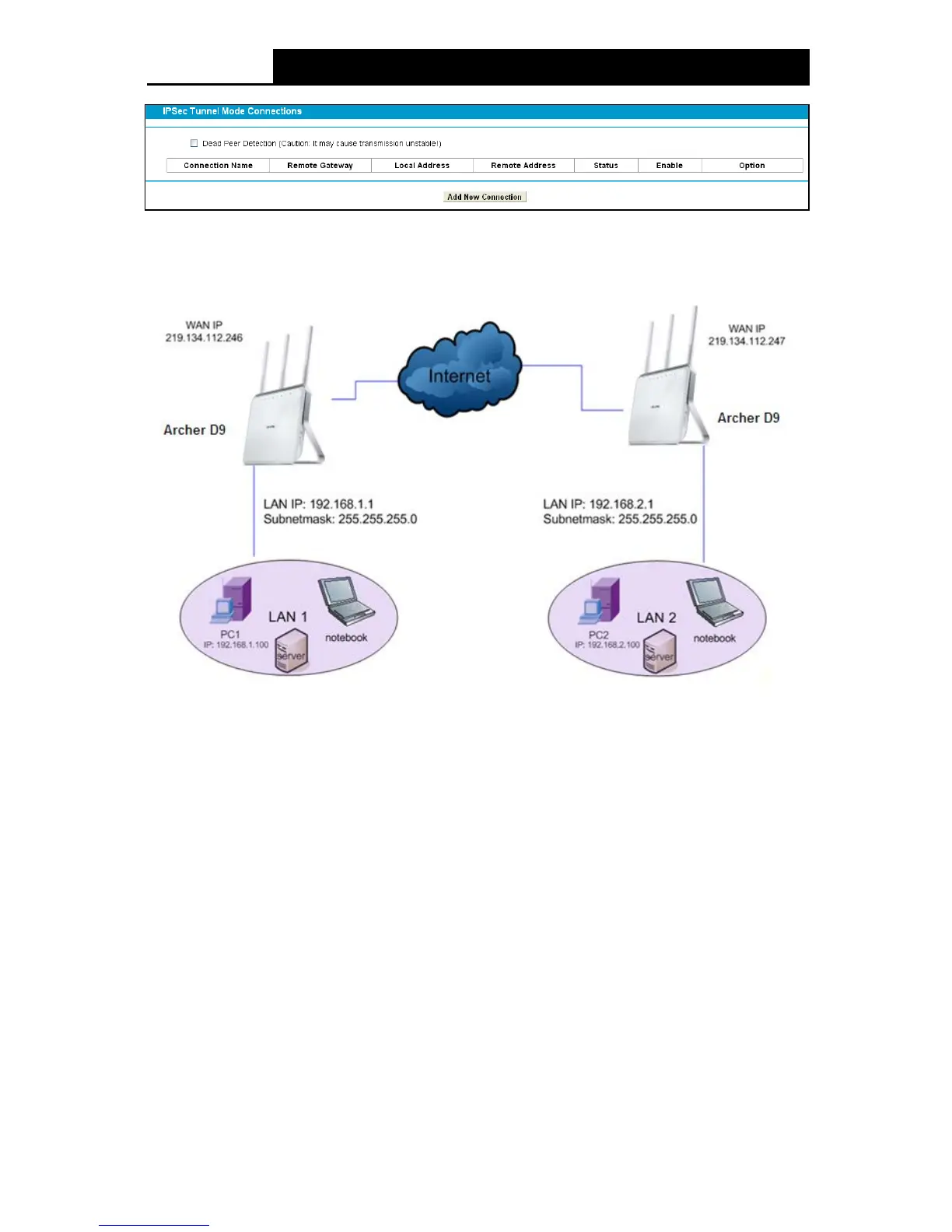This section will guide you to configure a VPN tunnel between two Archer D9s. The topology is as