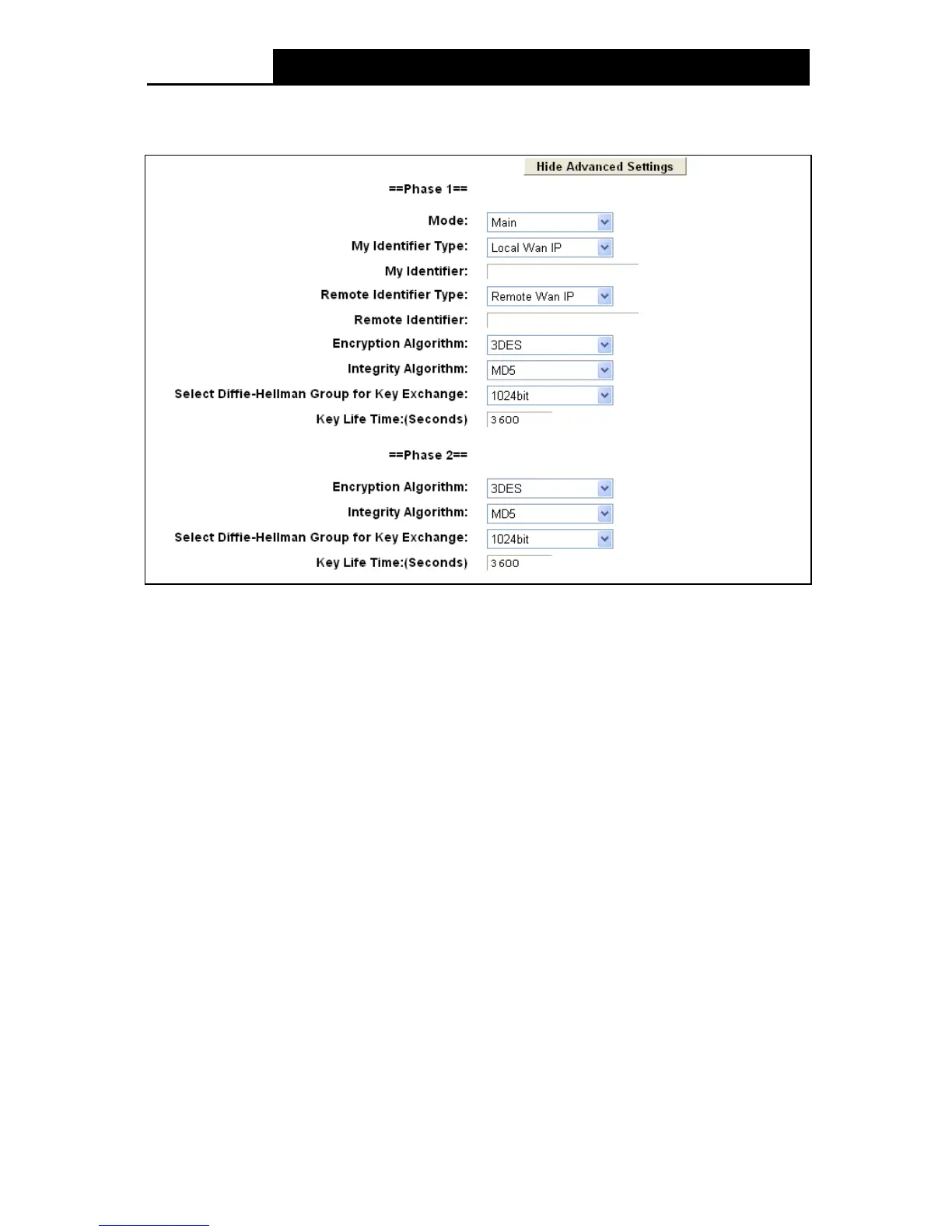 Key Life Time: Enter the number of seconds for the IPSec lifetime. It is the period of time to