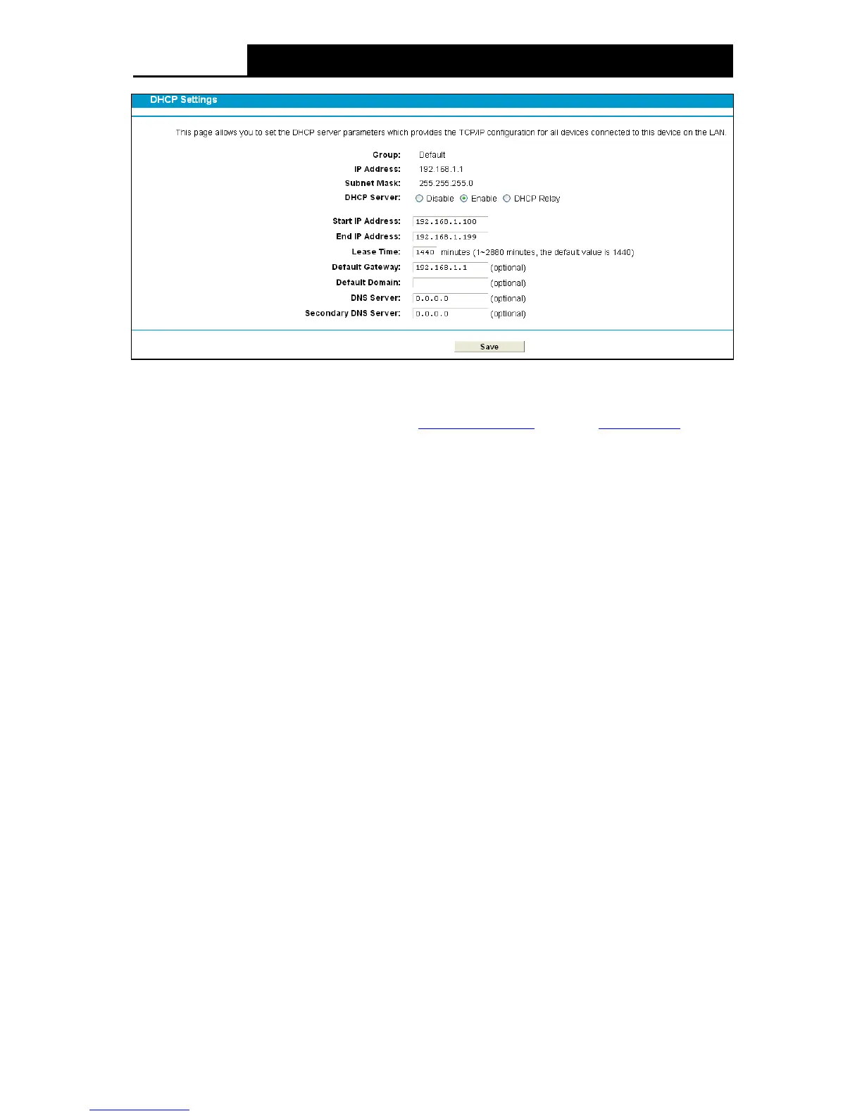 DHCP Server: If enabled, the modem router will work as a DHCP server, which provides the