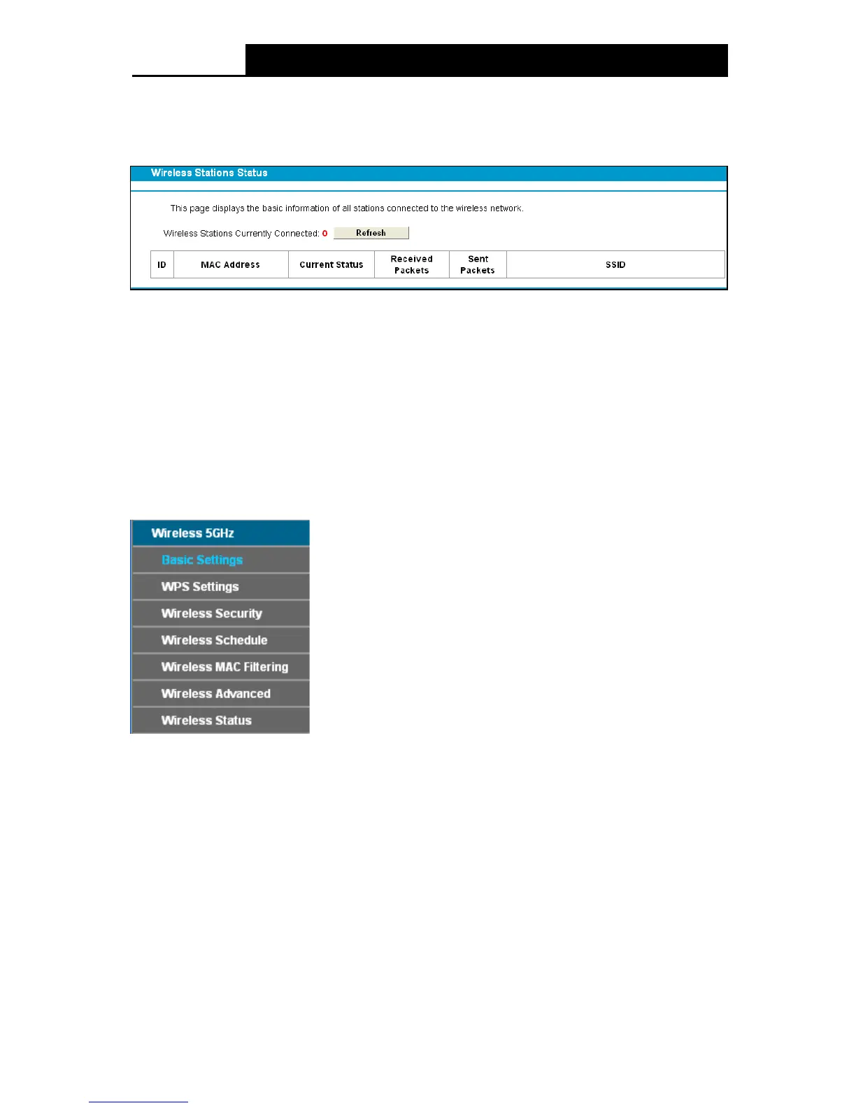 Status, Received Packets and Sent Packets for each connected wireless station.