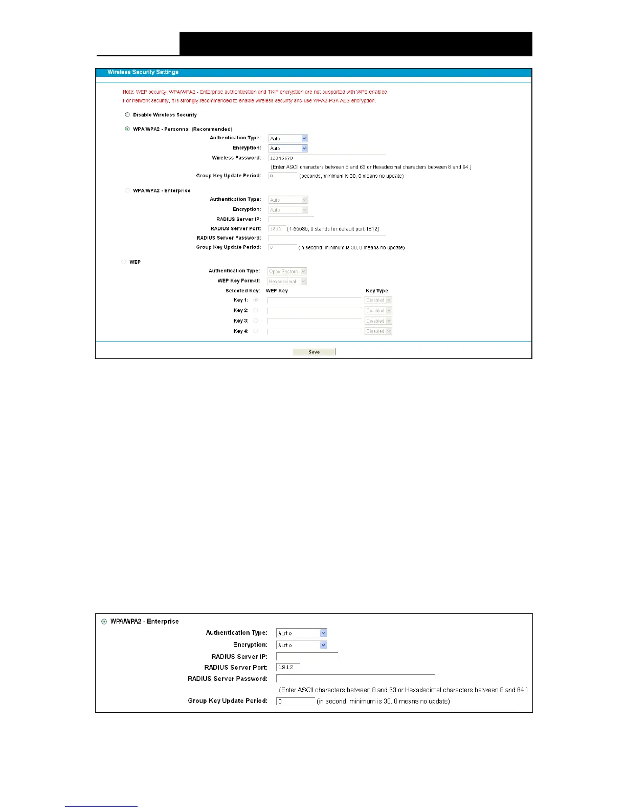 the drop-down list. The default setting is Auto, which can select WPA-PSK