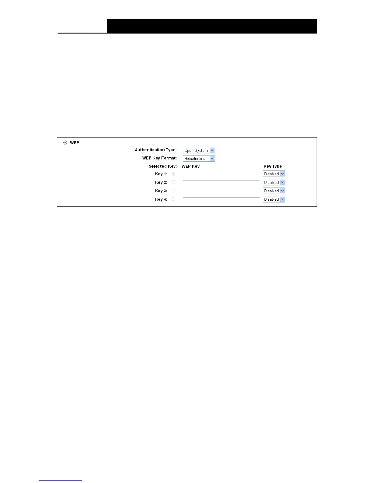 • WEP Ke y Format: Hexadecimal and ASCII formats are provided here. Hexadecimal