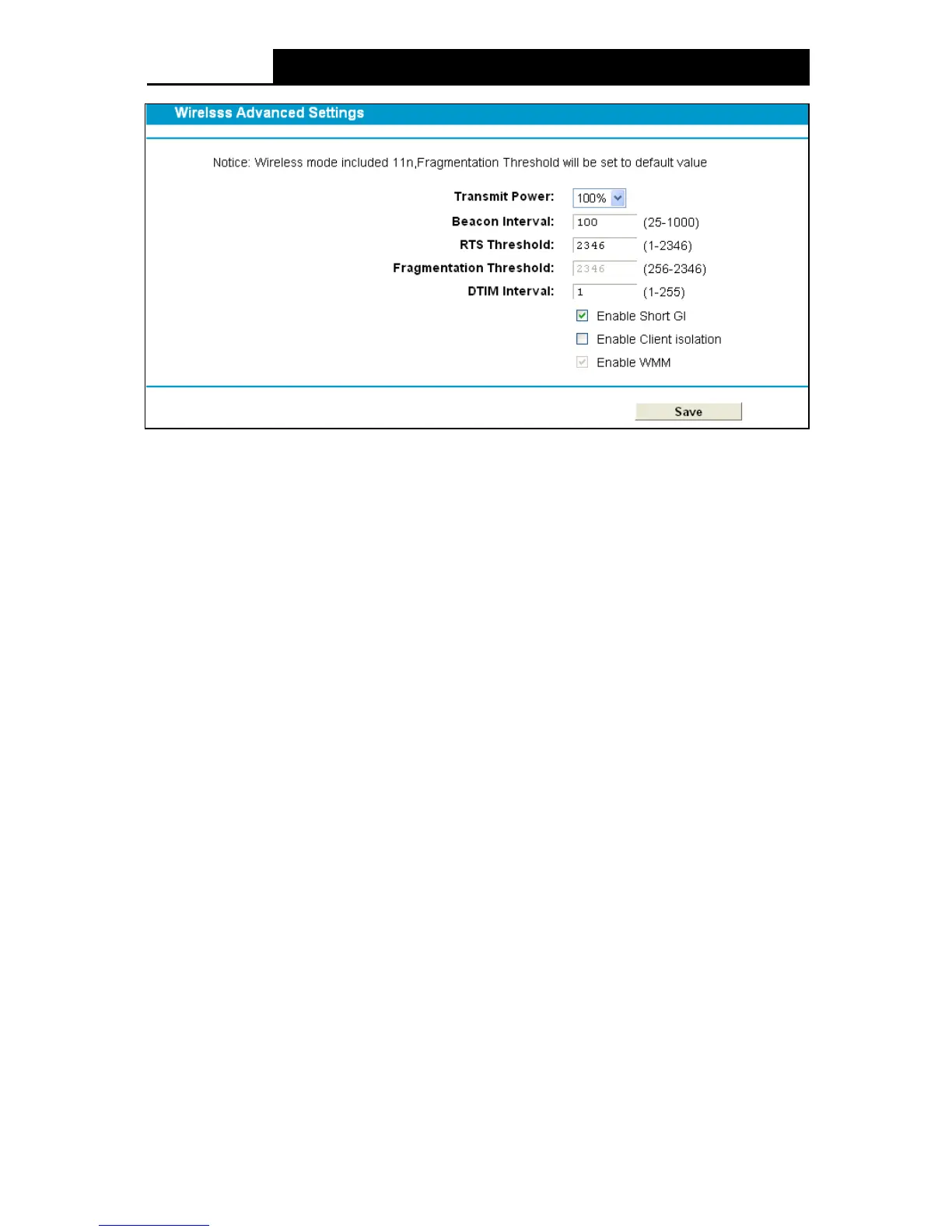 Enable Short GI: It is recommended to Enable Short GI, which will increase the data