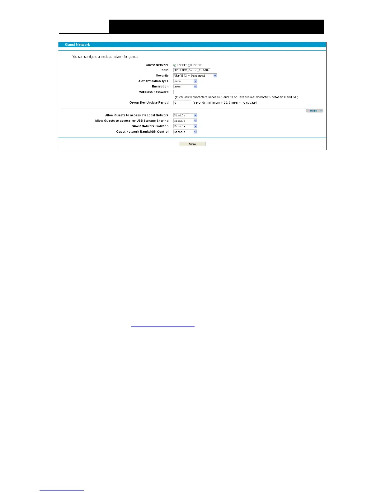 SSID: The guest network name. When setting up a Guest network, it is strongly