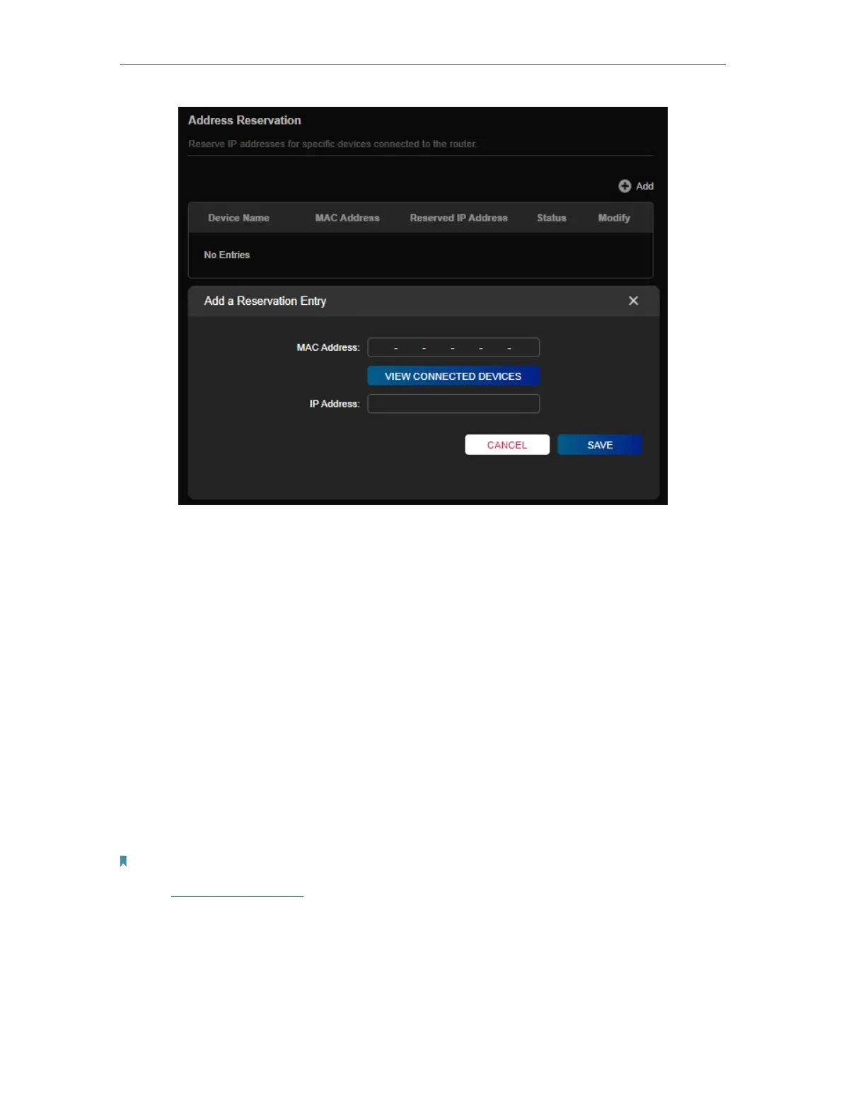 3. Enter the IP address to reserve for the client device.