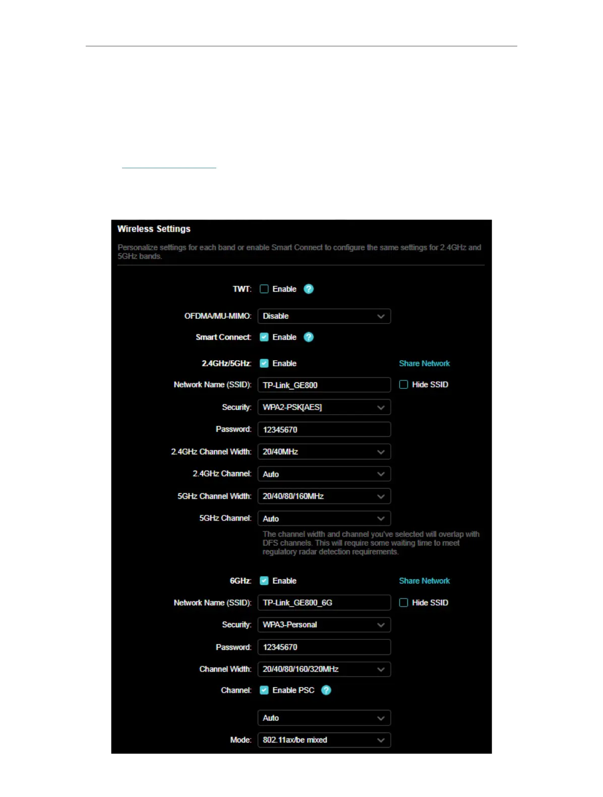 2. Go to Wireless or Advanced > Wireless > Wireless Settings.