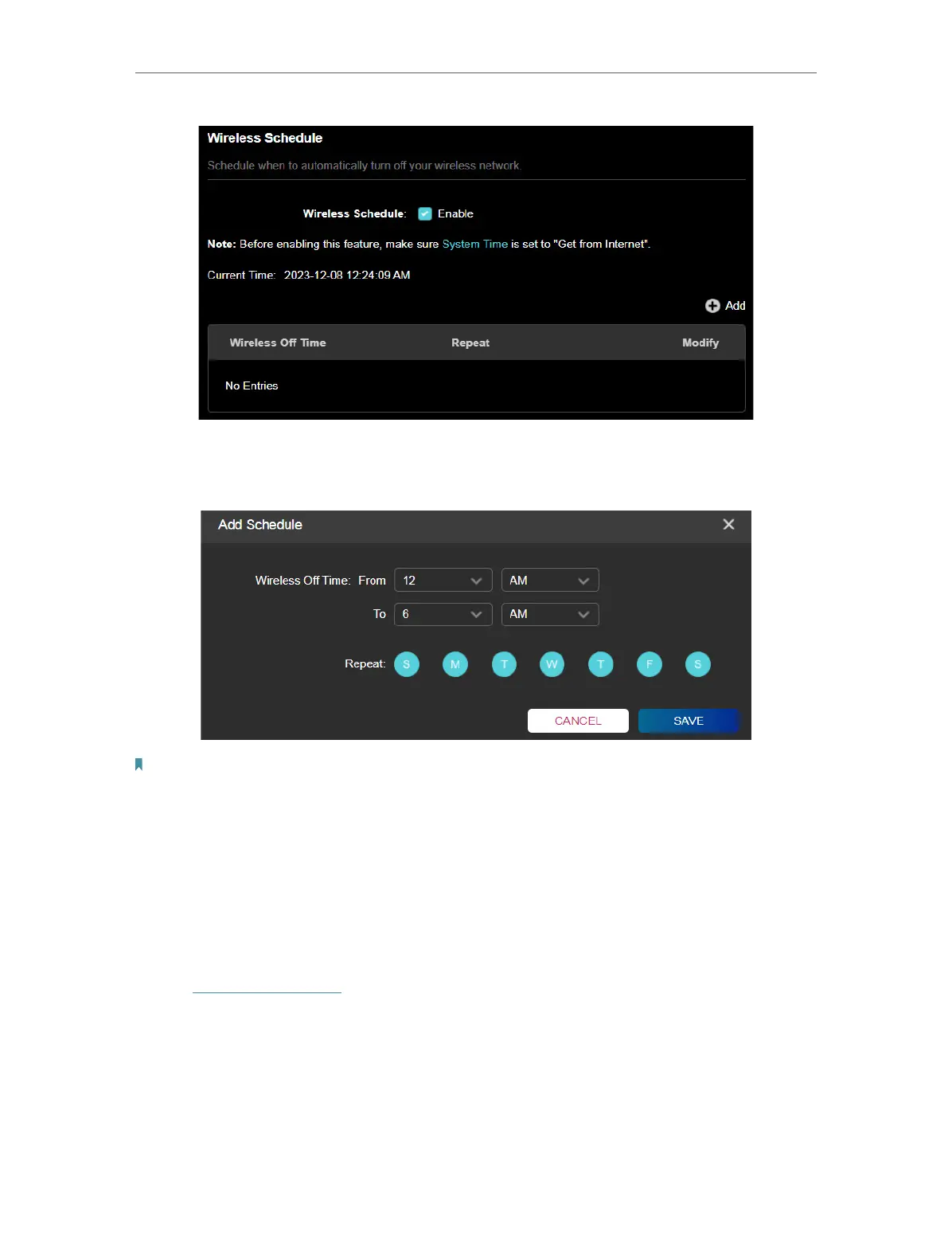 4. Click Add to specify a wireless off period during which you need the wireless off