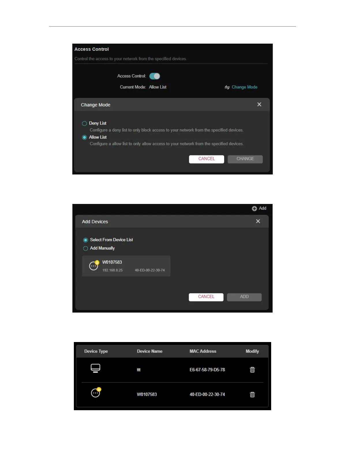 2 ) Your own device is in the Allow List by default and cannot be deleted. Click +Add
