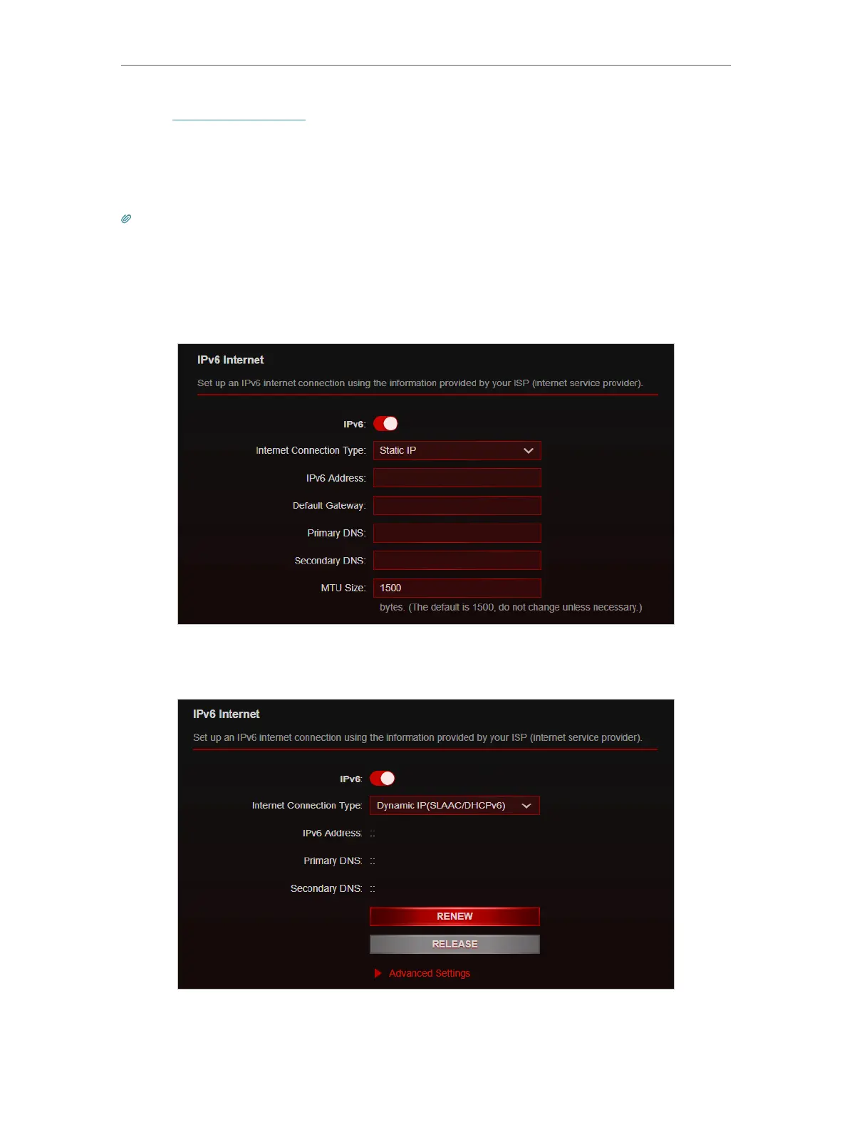 2 ) Dynamic IP (SLAAC/DHCPv6): Click Advanced to input further information if
