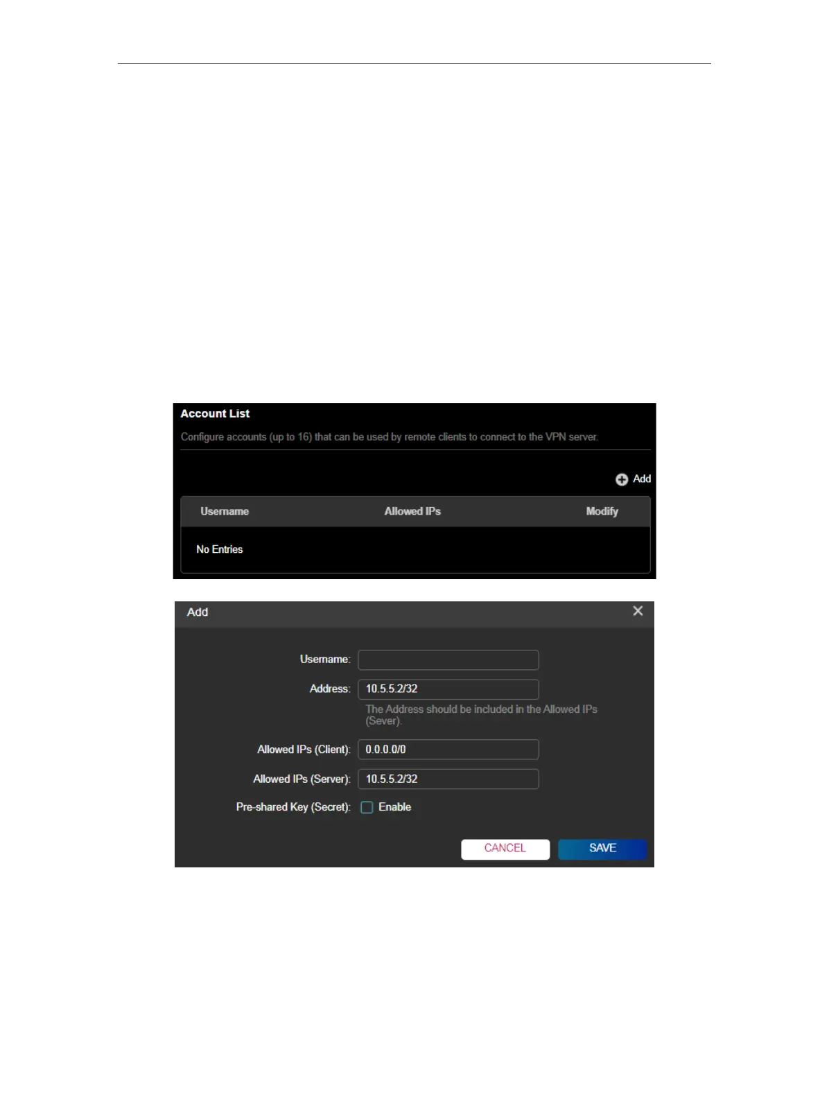 Step 2. Create accounts that can be used by remote clients to connect to the VPN
