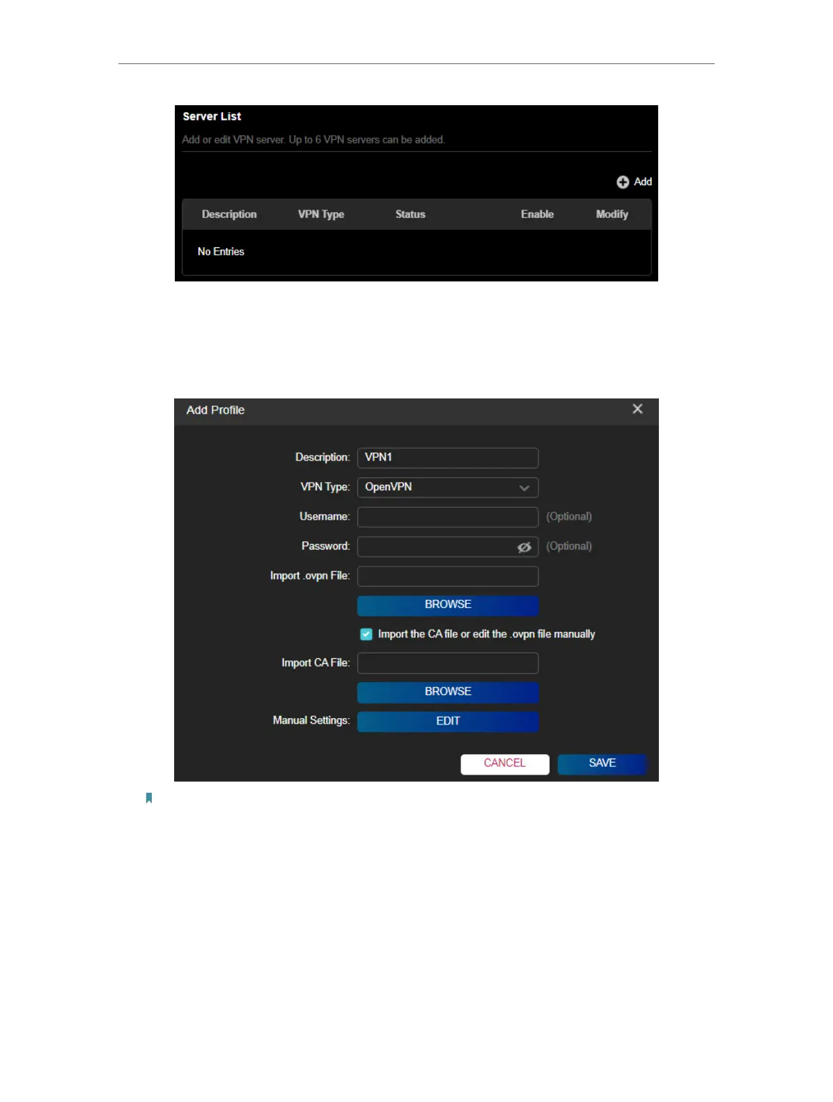 Note: You can also check the box of Import the CA file or edit the . ovpn file manually, then upload the CA file or