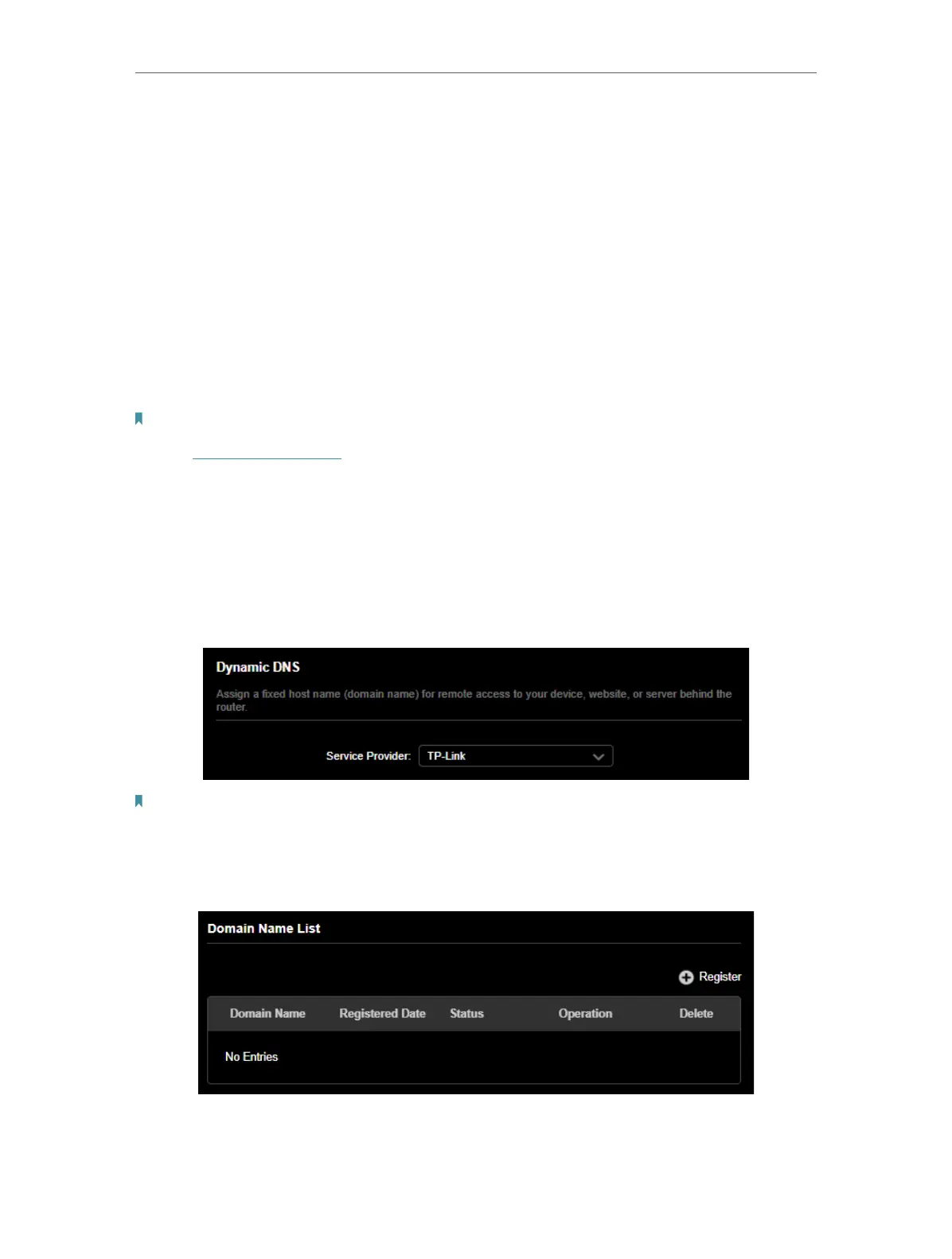 4. Click Register in the Domain Name List if you have selected TP-Link, and enter the